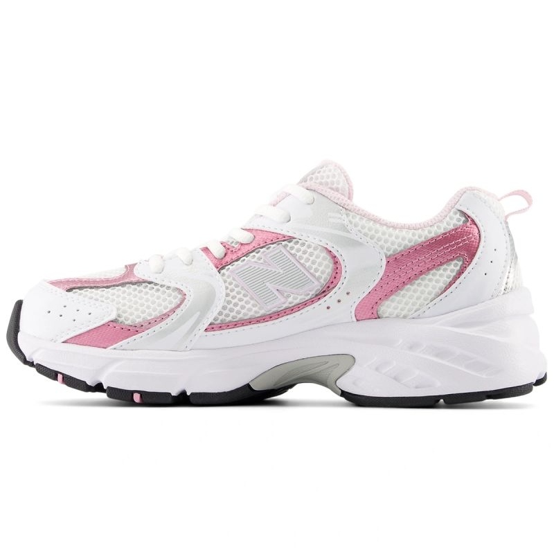 Les chaussures New Balance GR530RK sont non seulement fonctionnelles, mais aussi élégantes. Leur design tendance, combiné à la couleur blanche et aux détails roses, en fait un complément parfait à tout style de jeunesse et s'intégrera parfaitement aux tendances scolaires.