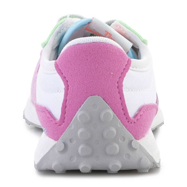 Les chaussures New Balance Jr IH327CH font partie de la série emblématique 327, désormais disponible en version enfant. Ce modèle se caractérise par un style rétro allié à la modernité, ce qui lui ajoute de l'originalité. La tige de ces chaussures est composée de textiles et de matériaux synthétiques de haute qualité. Ces matériaux confèrent aux chaussures non seulement un aspect attrayant, mais également une finition de haute qualité. Les couleurs des chaussures sont multicolores, ce qui leur confère un caractère féminin.