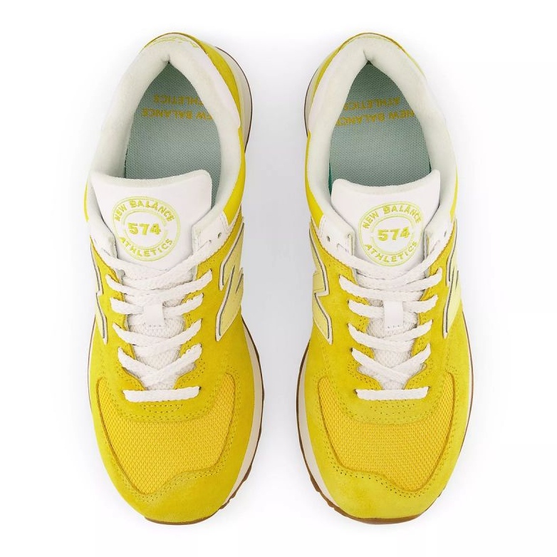 Les chaussures New Balance U574YK2 sont un modèle unisexe avec une construction basse. Ils sont offerts dans une couleur jaune distinctive, ce qui leur donne un aspect frais et décoratif. La tige des chaussures est faite de cuir suédé de haute qualité combiné à du mesh et des matériaux synthétiques, ce qui les rend confortables et durables. Les chaussures sont dotées d'une semelle intermédiaire dotée de la technologie ENCAP, qui est une combinaison d'un bord stable en polyuréthane et d'une couche d'amorti souple en mousse EVA. La semelle extérieure est en caoutchouc et offre une bonne adhérence grâce à la bande de roulement classique.