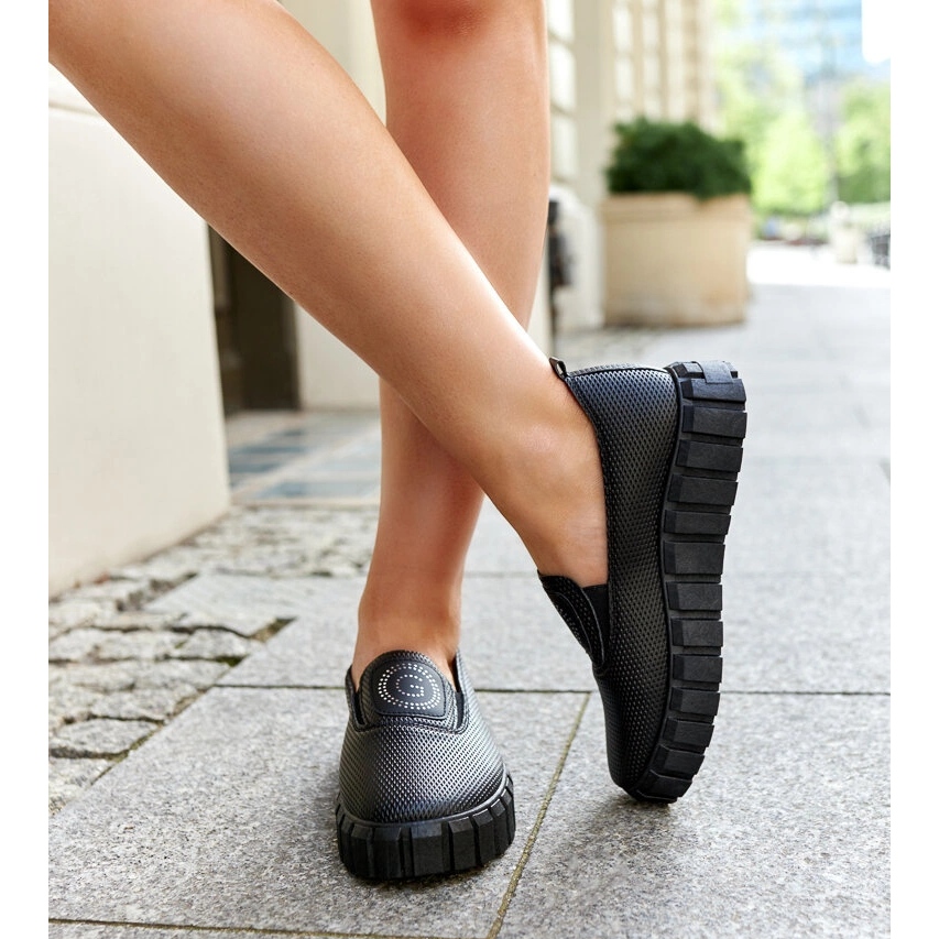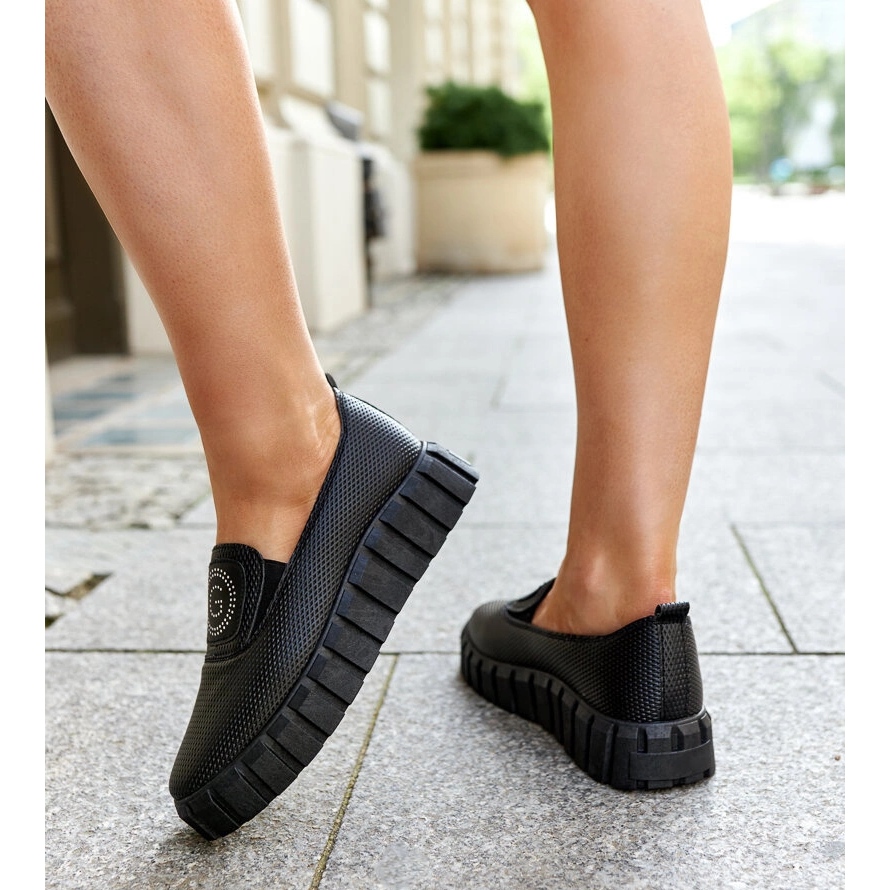 Des chaussures noires sur une séance de Teska massive sont un excellent choix pour les femmes à la recherche du style et du confort. Fabriquées en cuir écologique de haute qualité, ces baskets s'intègrent parfaitement dans les tendances de la saison printanière / été. Leur couleur noire élégante les rend universels et parfaits pour tout style, à la fois sportif et décontracté.