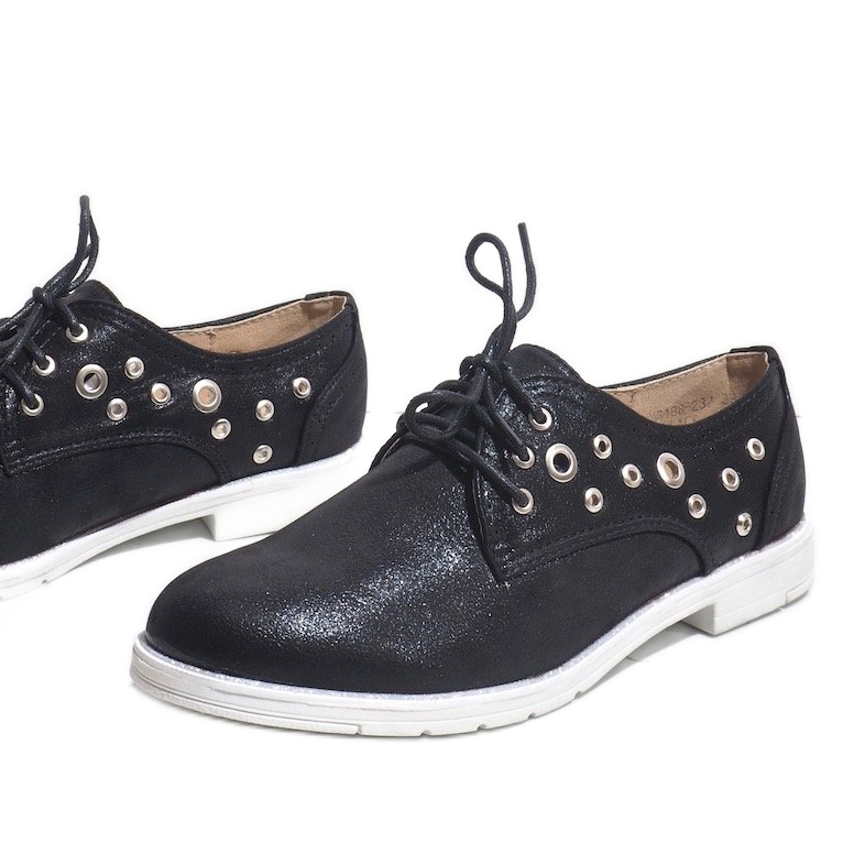 Les chaussures noires ajourées avec clous MB188-237 sont un choix idéal pour les femmes qui apprécient un look à la mode et un confort de port. Ces chaussures élégantes se distinguent par une fermeture à lacets qui permet un ajustement facile au pied, garantissant un confort au quotidien.