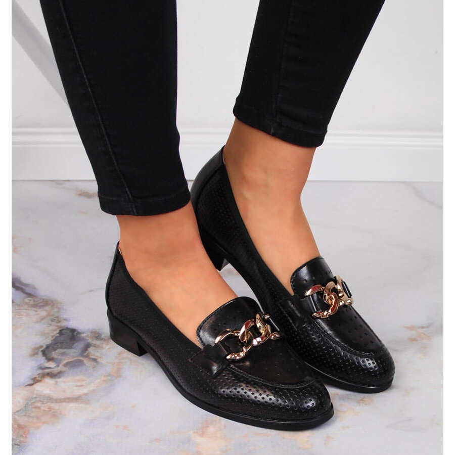 **Chaussures ajourées Potocki noires avec chaîne - élégance et confort pour toutes les occasions !**