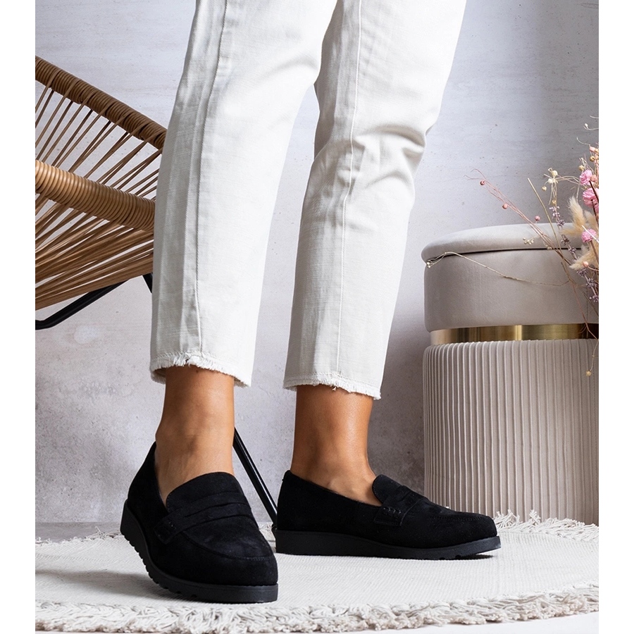 Les mocassins classiques et noirs Haydon sont une proposition pour les femmes qui apprécient une combinaison de style et de confort. Le pied d'amande a optiquement mince le pied, et une tige soigneusement fabriquée en cuir écologique en daim de haute qualité donne aux chaussures une finition élégante et mate.