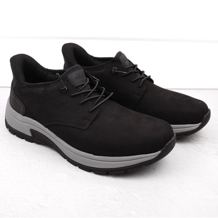 Détails: Chaussures noires en cuir confortables pour hommes Rieker 11050-00