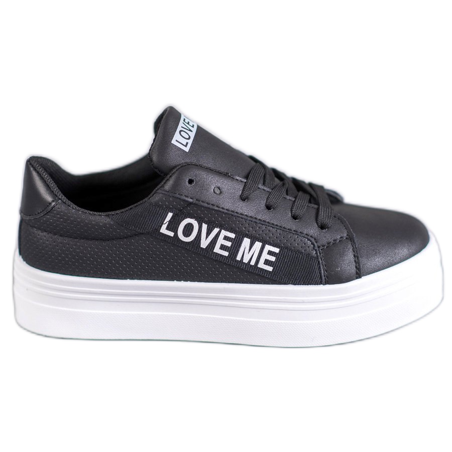 La tige en matériau noir de haute qualité se distingue par son aspect élégant, tandis que la semelle en plastique blanc avec bande de roulement ajoute non seulement du caractère, mais assure également une excellente adhérence et une excellente stabilité sur diverses surfaces. Des détails tels que les inscriptions blanches « LOVE ME » sur le côté et la languette ajoutent une touche d'originalité au look classique des chaussures.