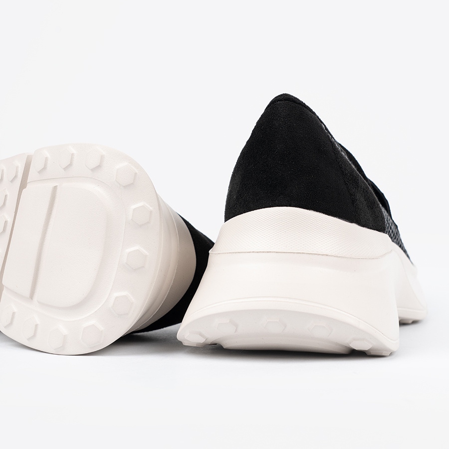 La plate-forme élevée d'une hauteur de 7 cm non seulement élimente optiquement la figure, mais absorbe également parfaitement chaque étape, offrant une stabilité et un support. Fabriqués en cuir écologique en daim de haute qualité, les chaussures noires seastar se distinguent par le style et l'élégance. Leur couleur noire universelle les rend facilement à se fondre dans diverses stylifications, de décontractées à plus sophistiquées.