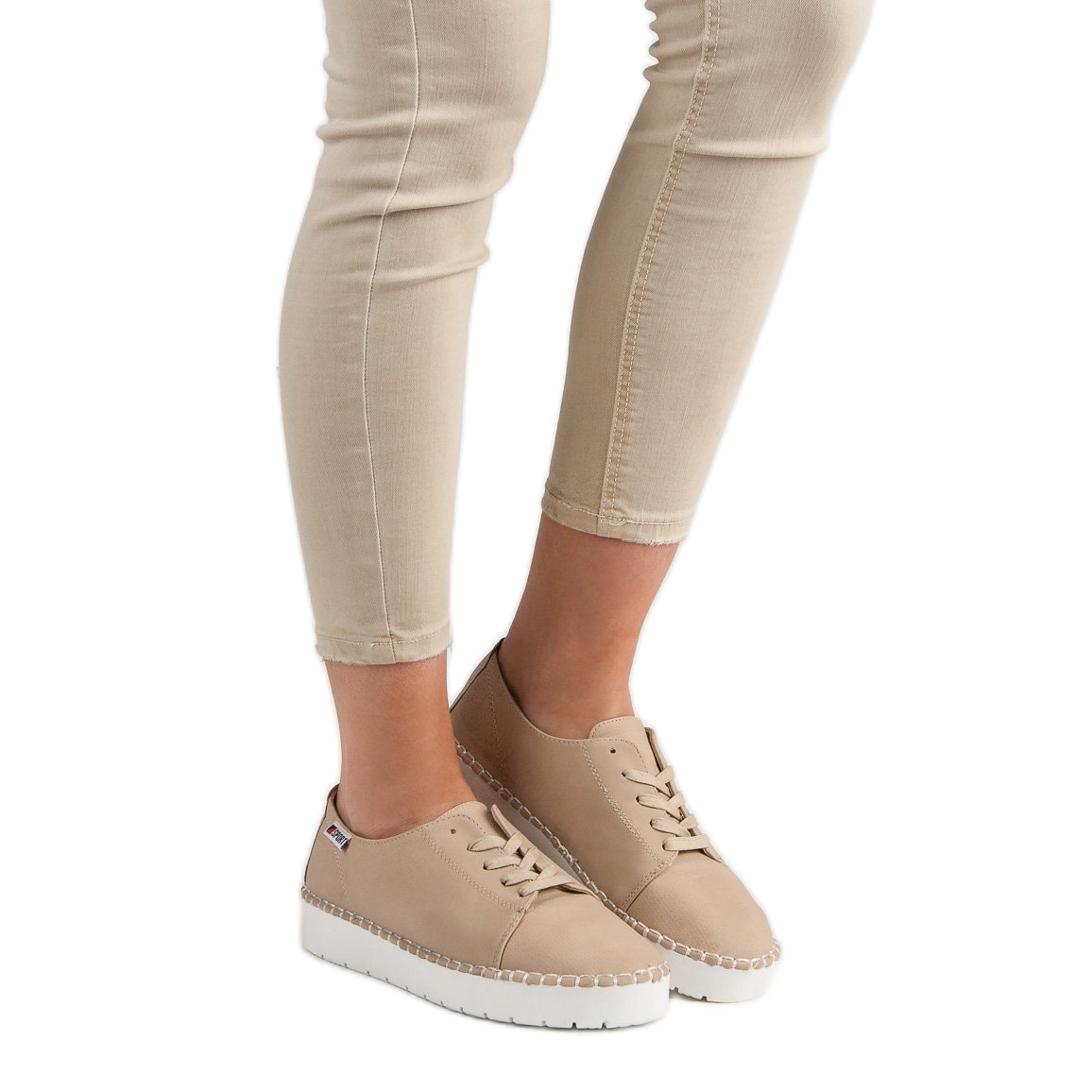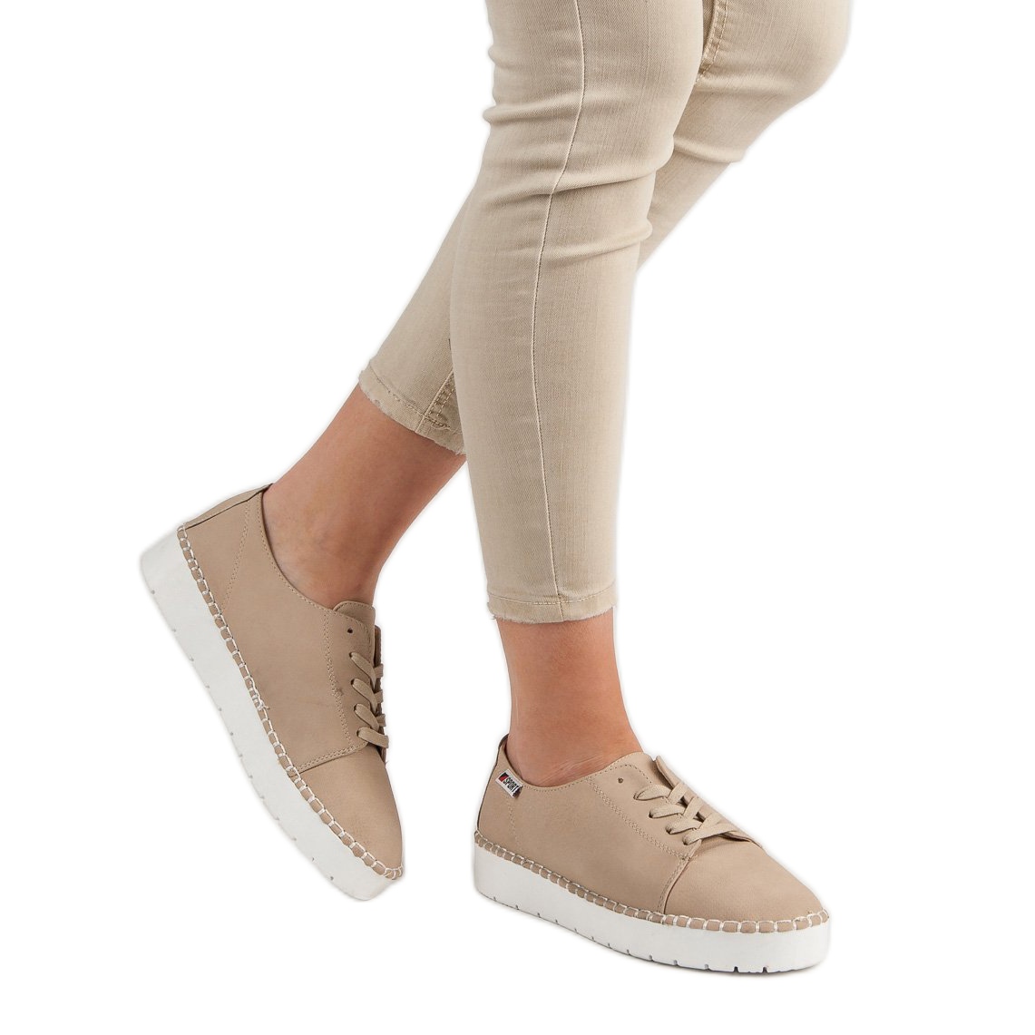 Les chaussures beiges se marient parfaitement avec une variété de styles, du quotidien au légèrement plus élégant. La hauteur de la plateforme de 3,5 cm offre un effet de levage en douceur sans alourdir le pied. La fermeture à lacets permet un ajustement facile aux besoins individuels.