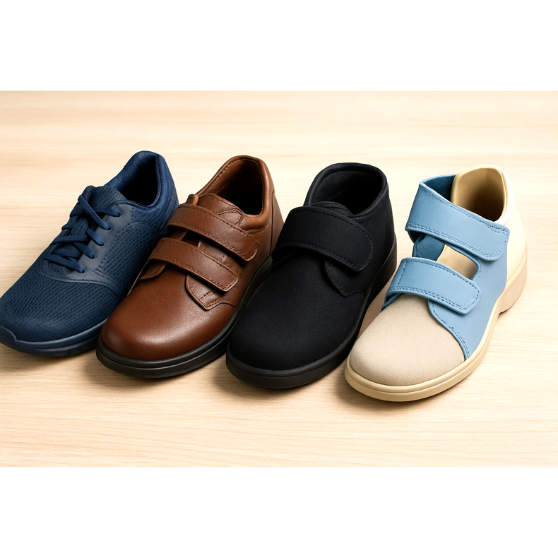 Chaussures conçues pour les personnes en rééducation. Ils comportent souvent des raidisseurs spéciaux, des attaches réglables et des semelles à répartition de pression qui protègent la zone opérée. Ils peuvent être une solution temporaire pendant la convalescence ou un élément permanent de votre garde-robe, selon le type d'intervention chirurgicale.
