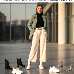 Toutes les chaussures n’auront pas fière allure avec un pantalon large. Les ballerines à semelle plate et aux jambes longues et larges sont une combinaison qui peut optiquement raccourcir la silhouette - à moins que le pantalon ne soit correctement raccourci jusqu'à la cheville. La même chose se produit avec les baskets basses, qui se perdent sous les longues jambes du pantalon, perturbant ainsi tout l'effet.
