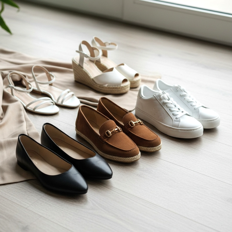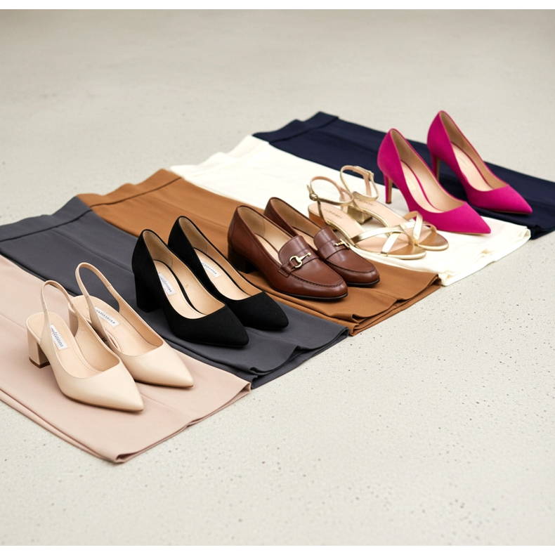 Des chaussures aux couleurs neutres – noir, beige ou marron – sont également une solution sûre. Ces couleurs s'adaptent à la plupart des styles et conviendront aussi bien au bureau qu'au quotidien.