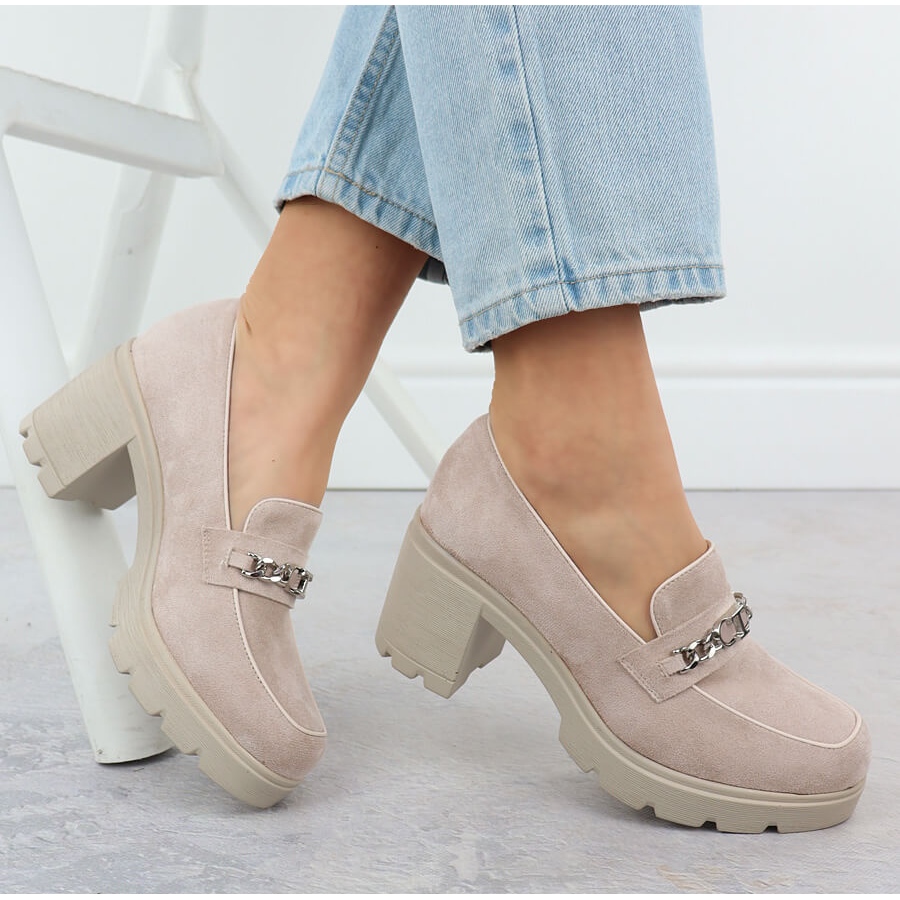 Détails: Chaussures pour femmes avec daim beige Potocki SZ12629 avec une chaîne