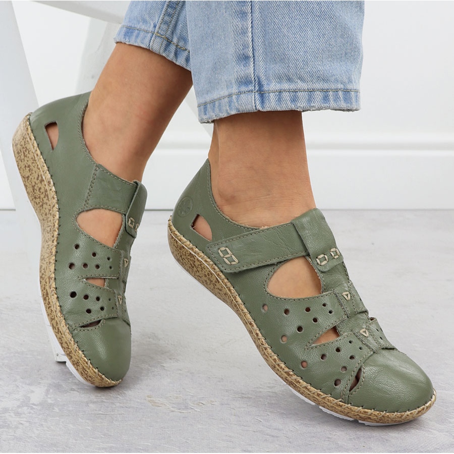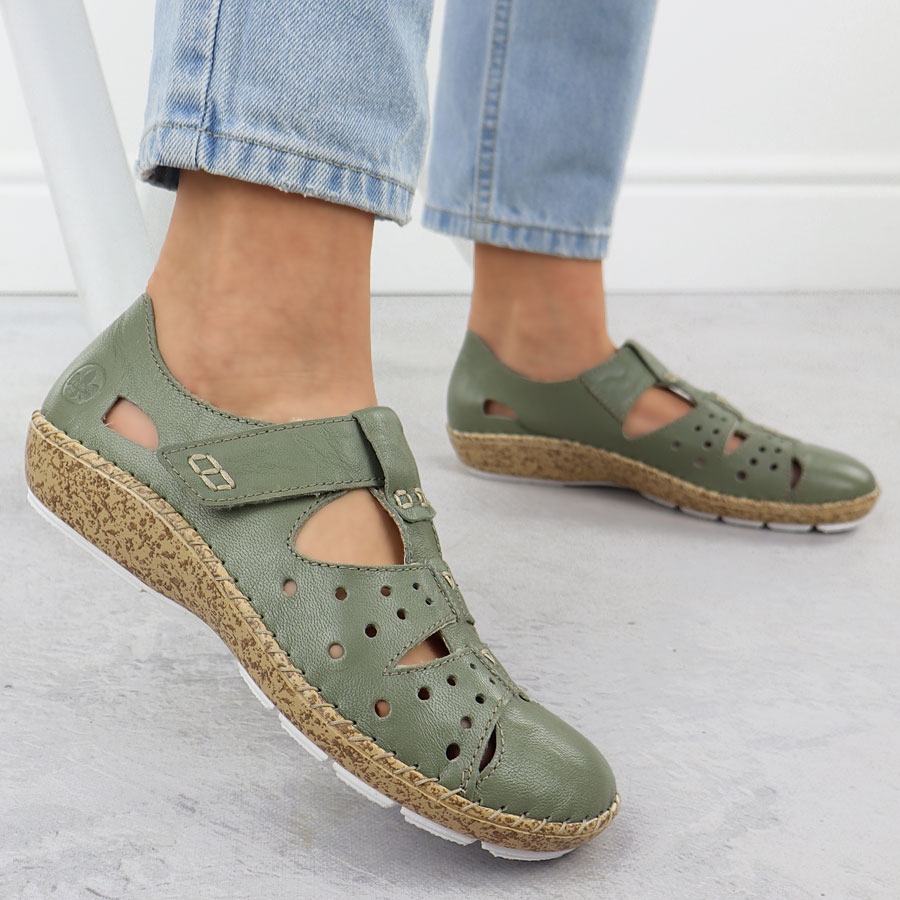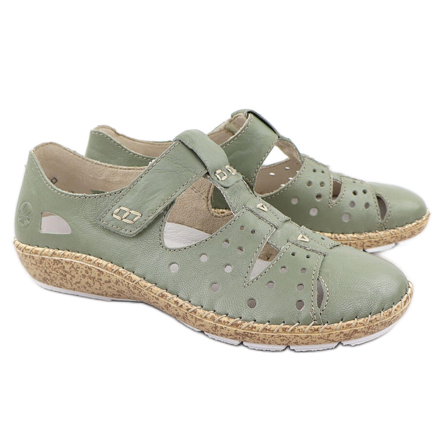 Détails: Chaussures pour femmes avec velcro, Openwork Green Rieker 44852-52 vert