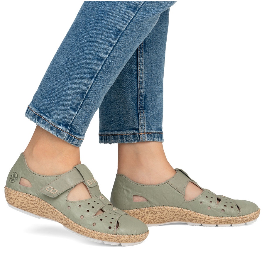 Rieker Chaussures pour femmes avec velcro, Openwork Green Rieker 44852-52 vert
