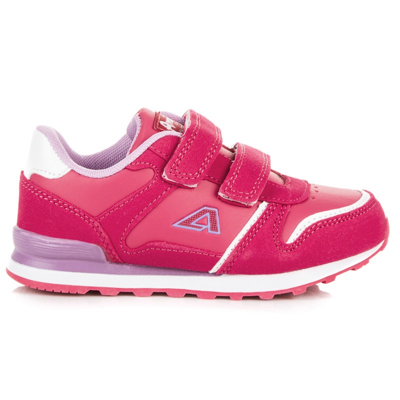 Chaussures de sport American Club élégantes et pratiques dans une nuance de rose foncé avec des empiècements violets. Conçu dans un souci de confort et d'utilisation quotidienne – facile à enfiler grâce aux fermetures fermeture scratch, durable et confortable tout au long de la journée.