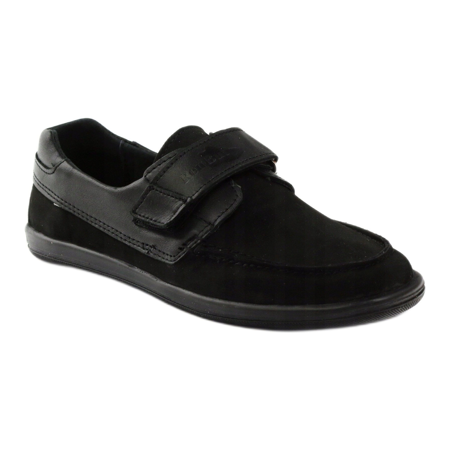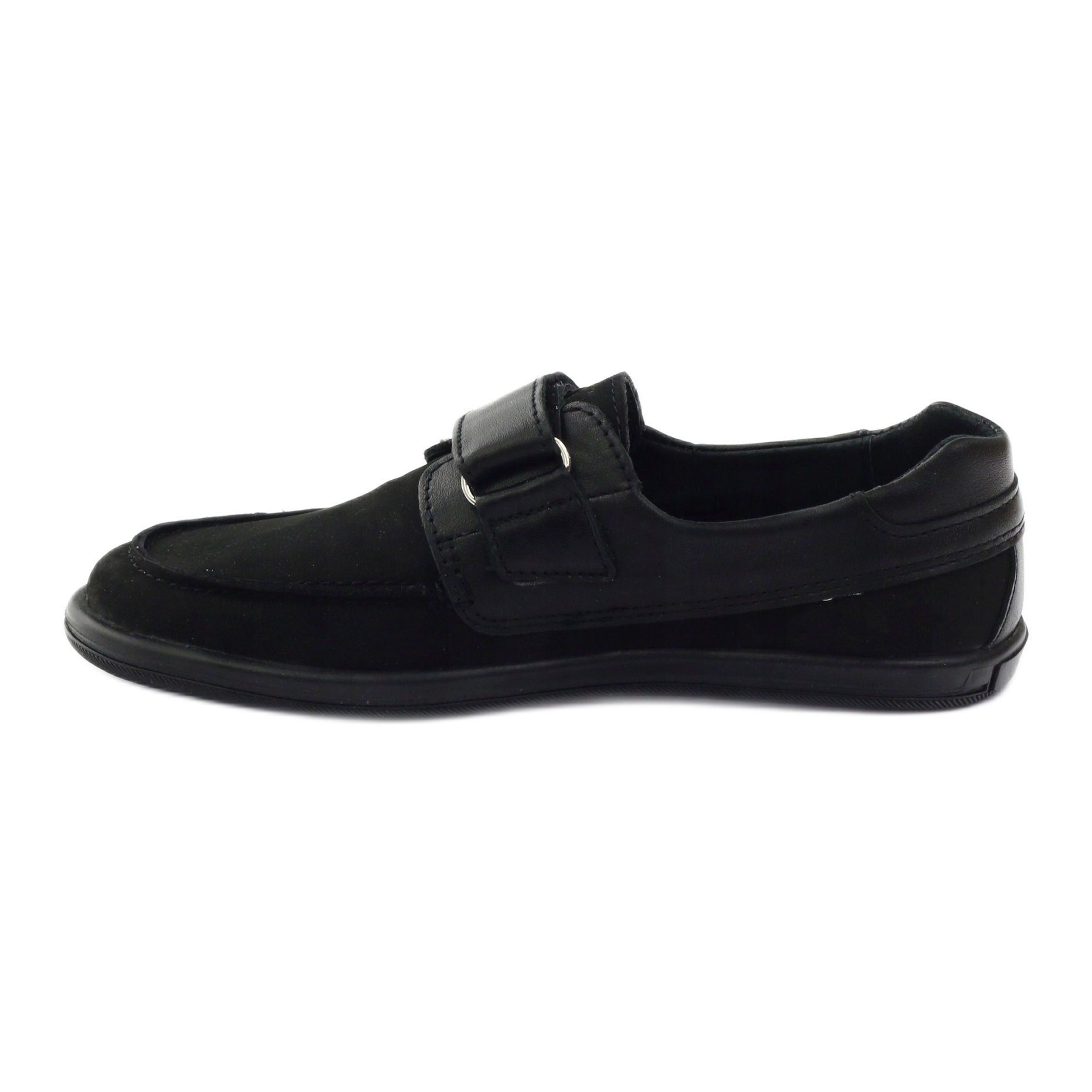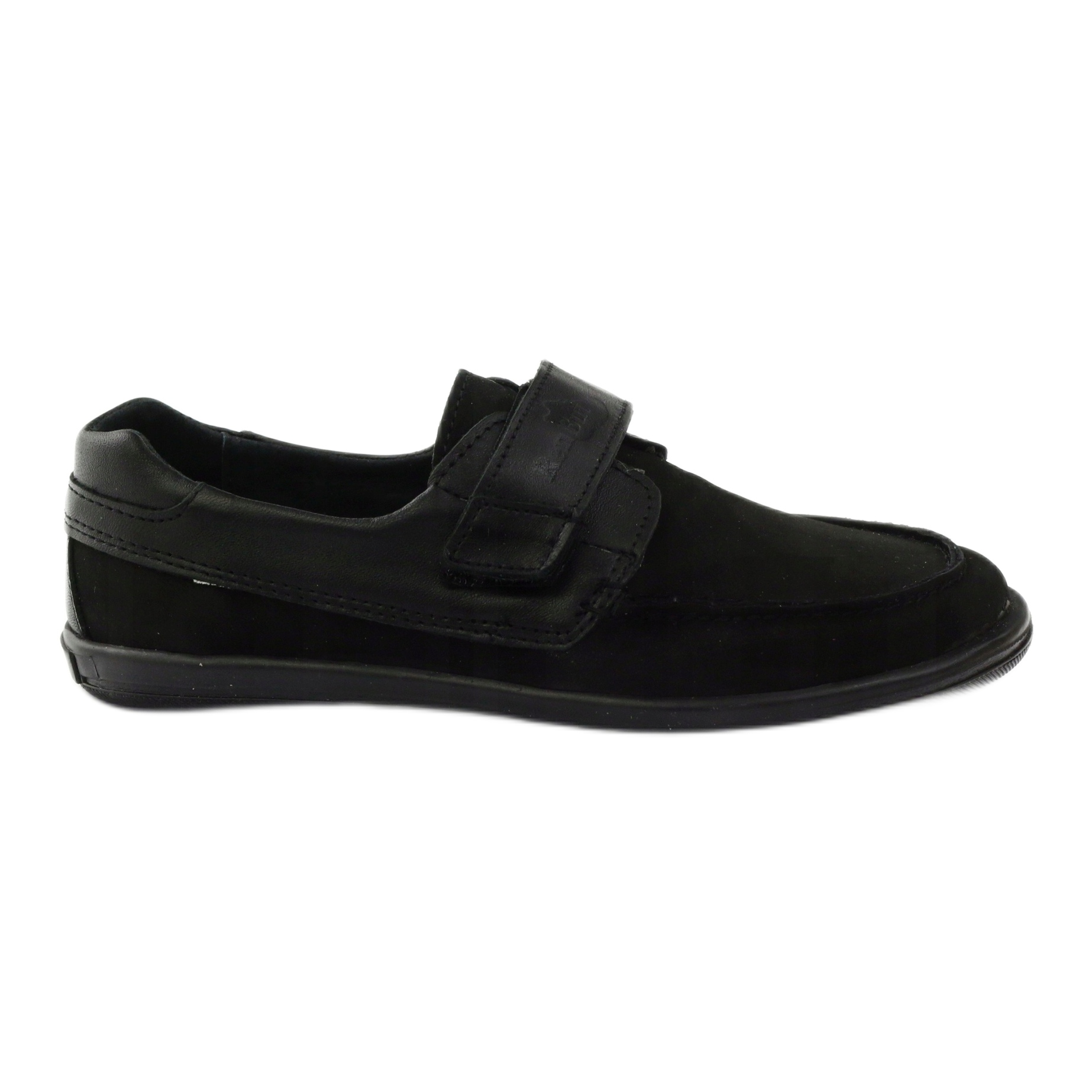 Mocassins classiques pour garçons en cuir naturel nubuck souple de couleur noire universelle. Le modèle 4249 allie confort et durabilité - fermeture avec fermeture scratch pour un ajustement rapide, avec un talon rigide pour stabiliser le pied. Tout l'intérieur de la chaussure est doublé de cuir naturel et la semelle intérieure en cuir profilée antibactérienne augmente le confort de port. La semelle en thermo-caoutchouc garantit une bonne adhérence sur diverses surfaces - parfaite pour les journées les plus froides.