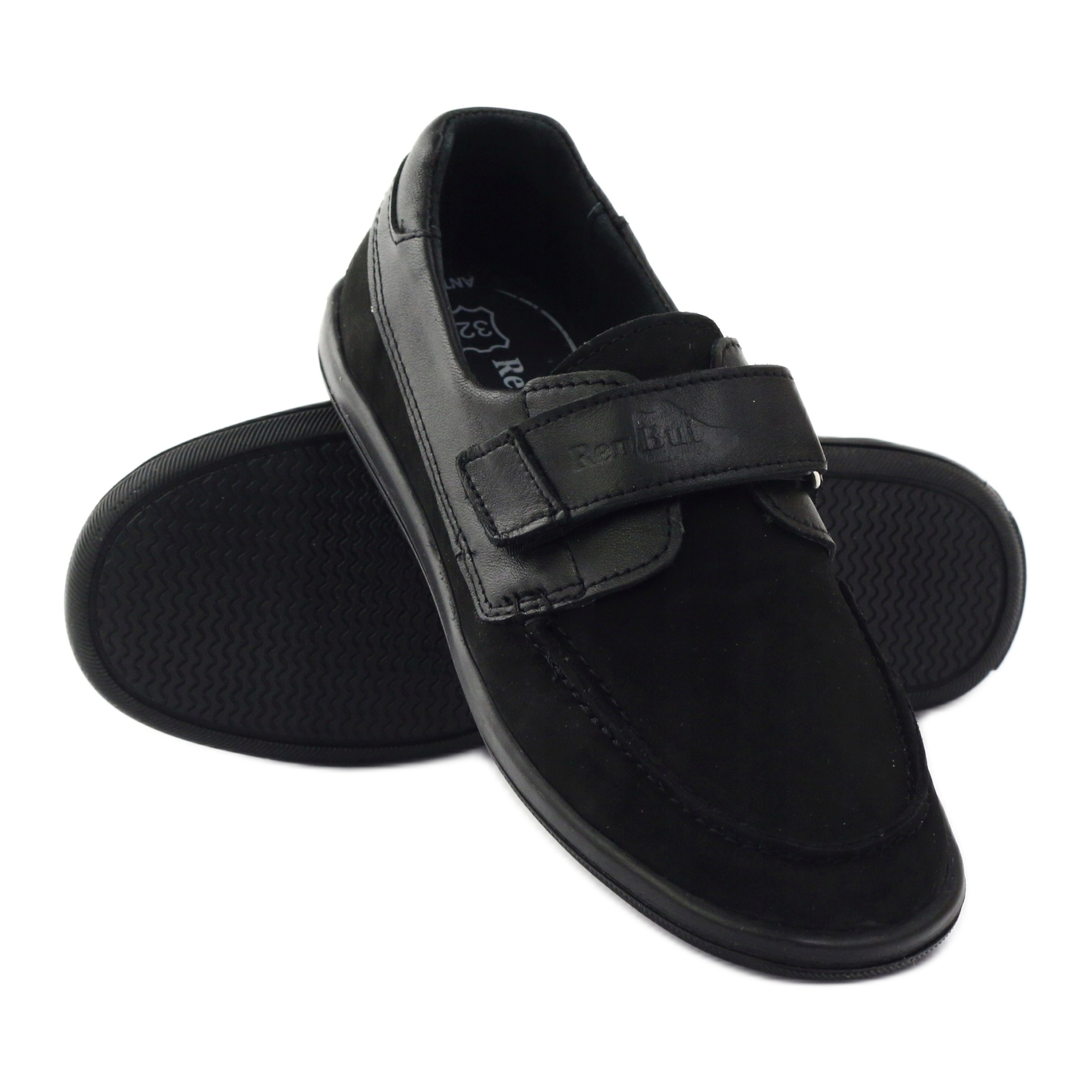 Chaussures en cuir pour garçon modèle Ren But. 4249 - noir, fermeture scratch