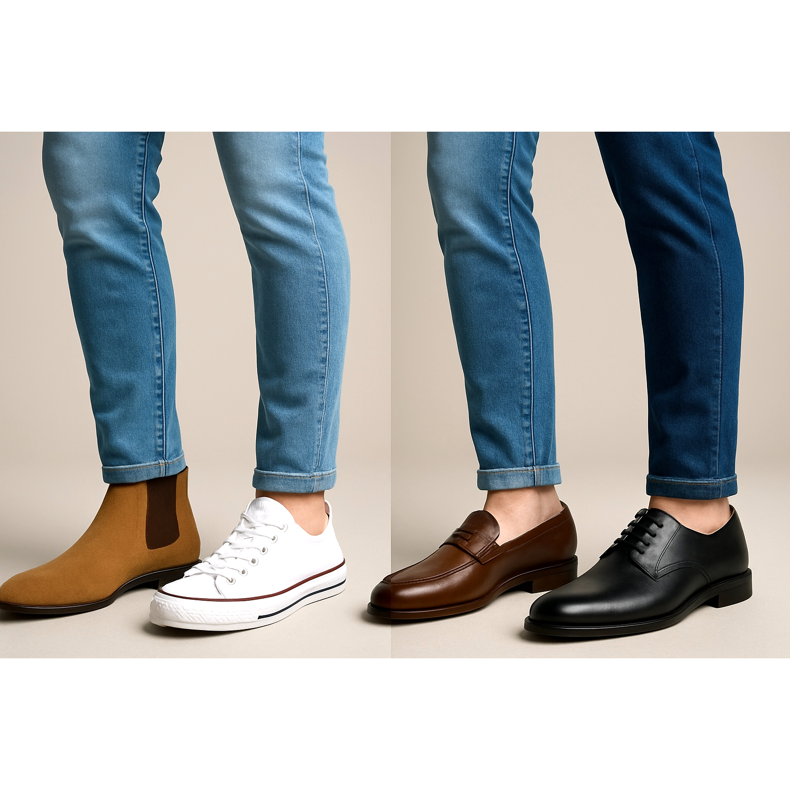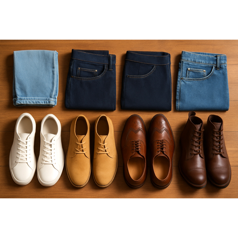 Un guide complet pour sélectionner des chaussures pour hommes pour différents styles de jeans. Apprenez les règles du style, de la coupe slim au baggy, et découvrez les combinaisons parfaites.