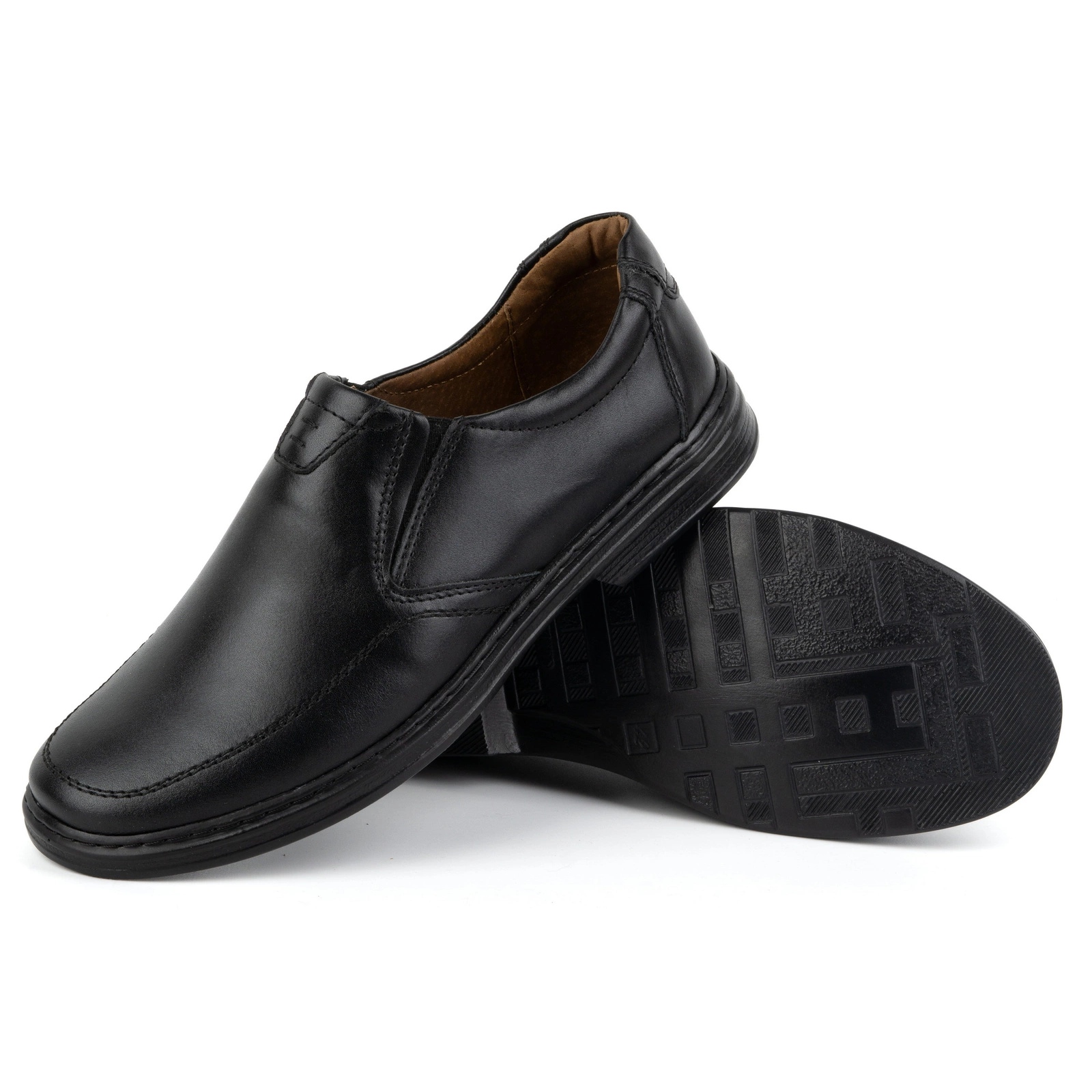 KOMODO Chaussures pour hommes en slip-on en cuir naturel 854k noir