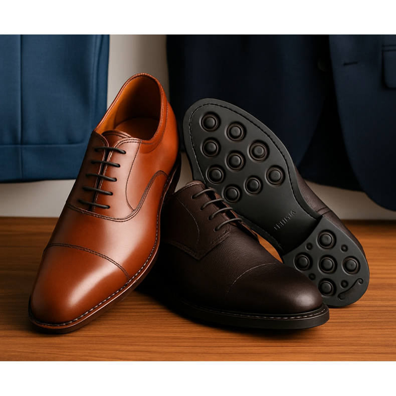 - Caoutchouc (Dainite, Vibram) — durable, sûr, de plus en plus accepté dans les bureaux.