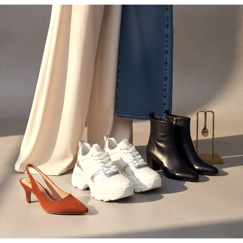 Assortir des chaussures à un pantalon palazzo large est une compétence qui repose sur quelques règles simples. Tout d’abord, ajoutez de la hauteur : un talon, une plateforme ou une semelle épaisse sont votre allié. Deuxièmement, faites correspondre la longueur de la jambe du pantalon à la hauteur de la chaussure - c'est crucial pour les proportions. Troisièmement, choisissez des styles fins et pointus qui équilibrent le volume des jambes larges.