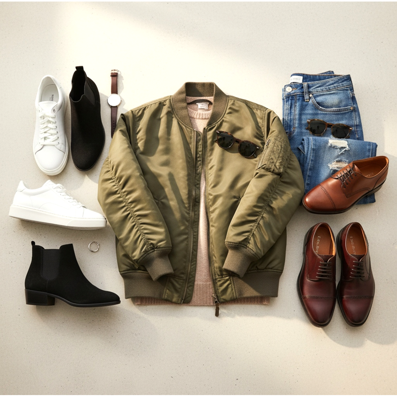 Le bomber est l’un des vêtements les plus en vogue, alliant caractère sportif et look élégant. Que vous choisissiez un blouson aviateur classique ou des modèles plus élégants, les bonnes chaussures peuvent changer complètement le caractère de l'ensemble du style. Les chaussures pour un bomber doivent avant tout être confortables et fonctionnelles, car un bomber est associé à un mode de vie actif.
