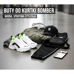 Il convient également de prêter attention aux baskets avec des détails caractéristiques - logos, rayures ou éléments colorés qui peuvent animer l'ensemble du style. Cependant, n'oubliez pas de ne pas en faire trop avec le nombre de motifs : si le bomber a déjà un imprimé, choisissez des chaussures plus sobres.