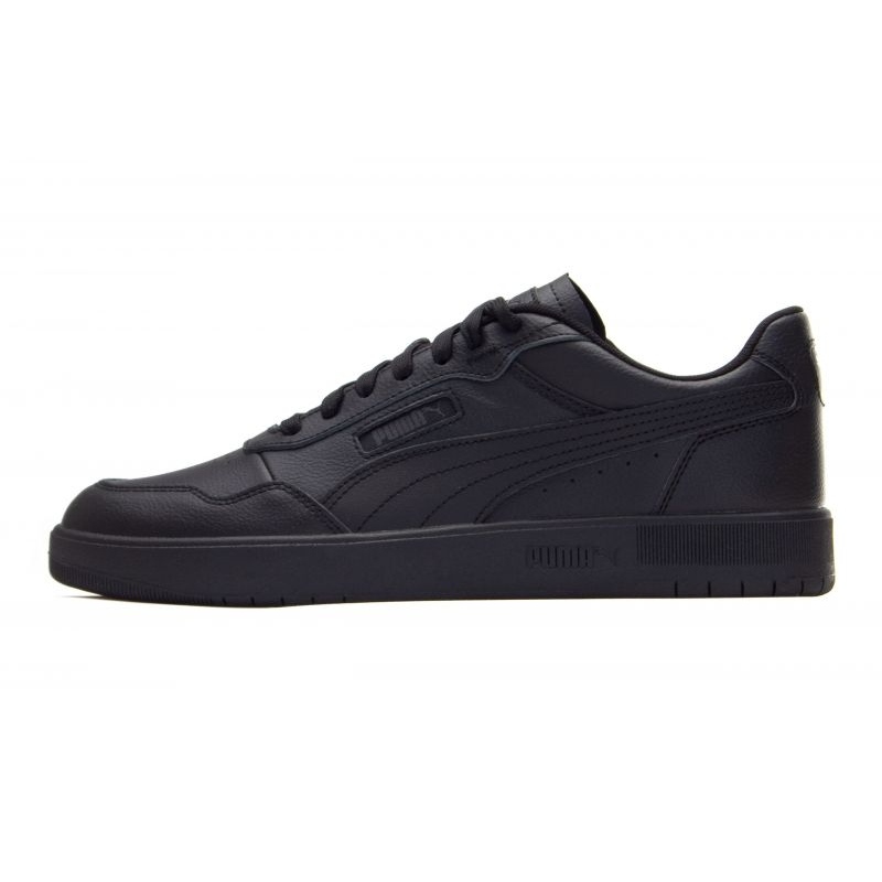 Les chaussures ultra élégantes et noires Puma Court sont une proposition pour les hommes qui apprécient chaque jour un style et un confort simples et intemporels. Le fermoir à faible coupe, lacé et les couleurs universels font que le modèle se mélange bien avec les stylisations sportives et décontractées.