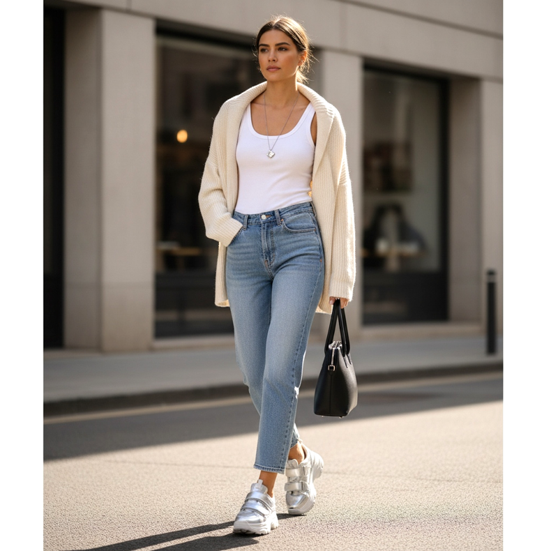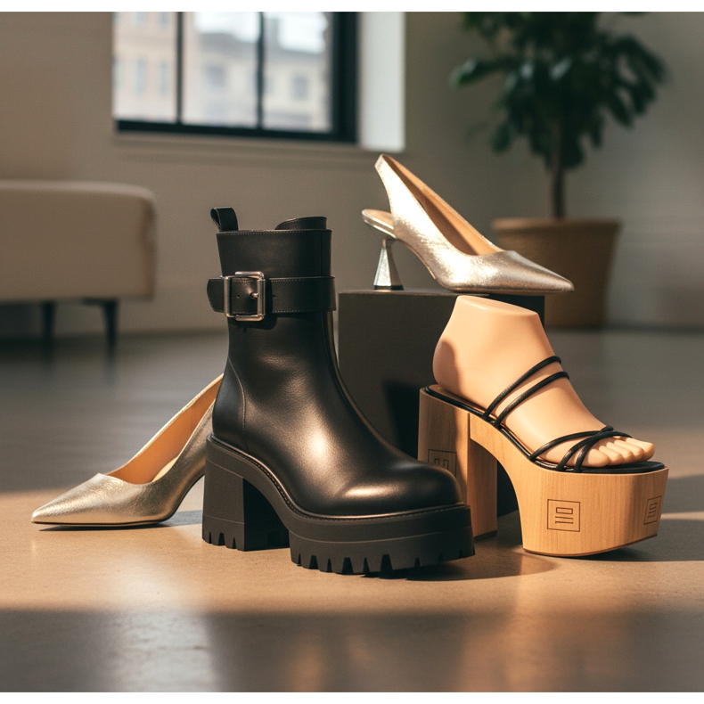 Les chaussures métalliques – argent et or – constituent la troisième catégorie. Bottines argentées, mules dorées, slingbacks métalliques, ce sont des chaussures qui en 2026 ne sont plus réservées exclusivement aux fêtes et aux mariages. Ils se portent au quotidien avec un denim ou des sous-vêtements au sens nouveau.