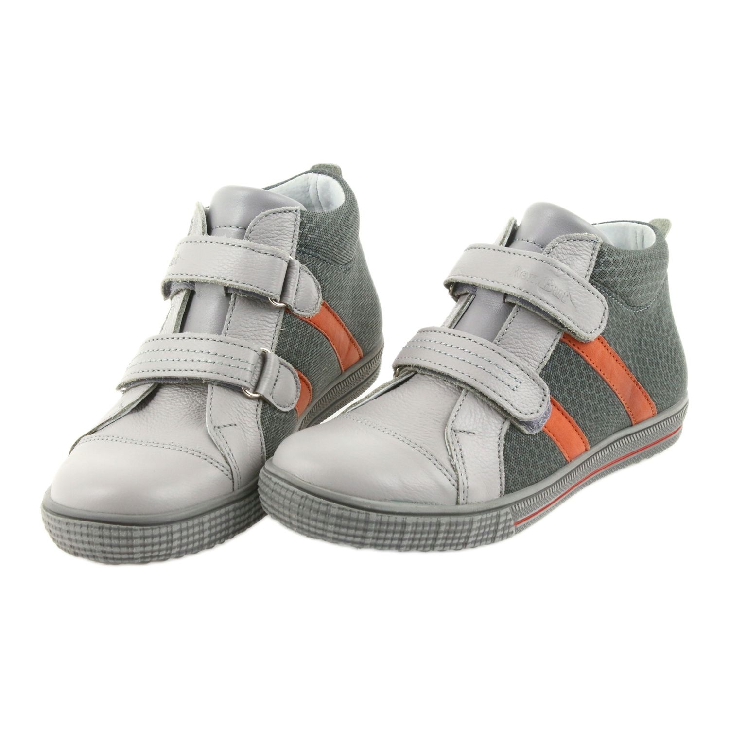 Ren Shoe Boys 4275 Popiel / Orange - Footwear solide, confortable et sûr pour les enfants actifs. Modèle non isolé, en cuir naturel et matériau textile, équipé d'une fermeture fermeture scratch pratique et d'un logo du fabricant affiché.