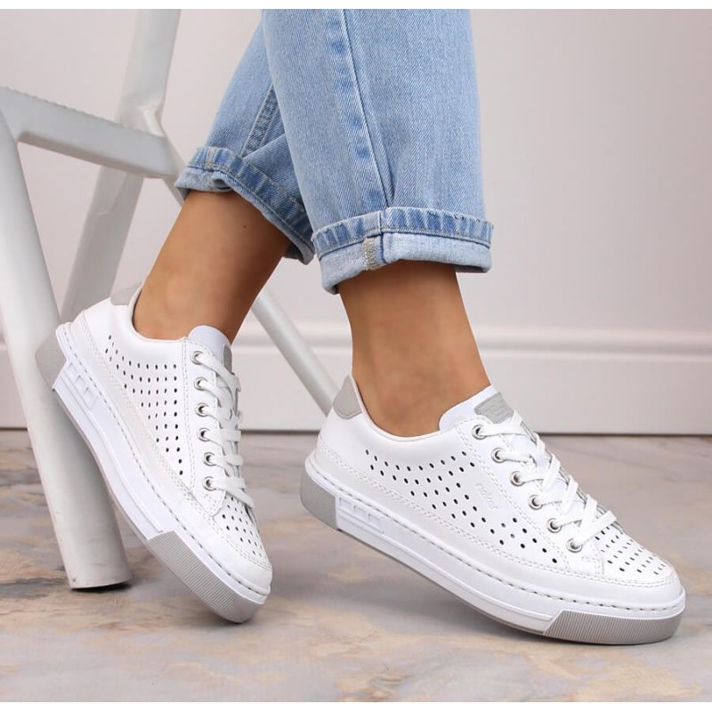 Détails: Chaussures Rieker W RKR642 en cuir ajouré blanc