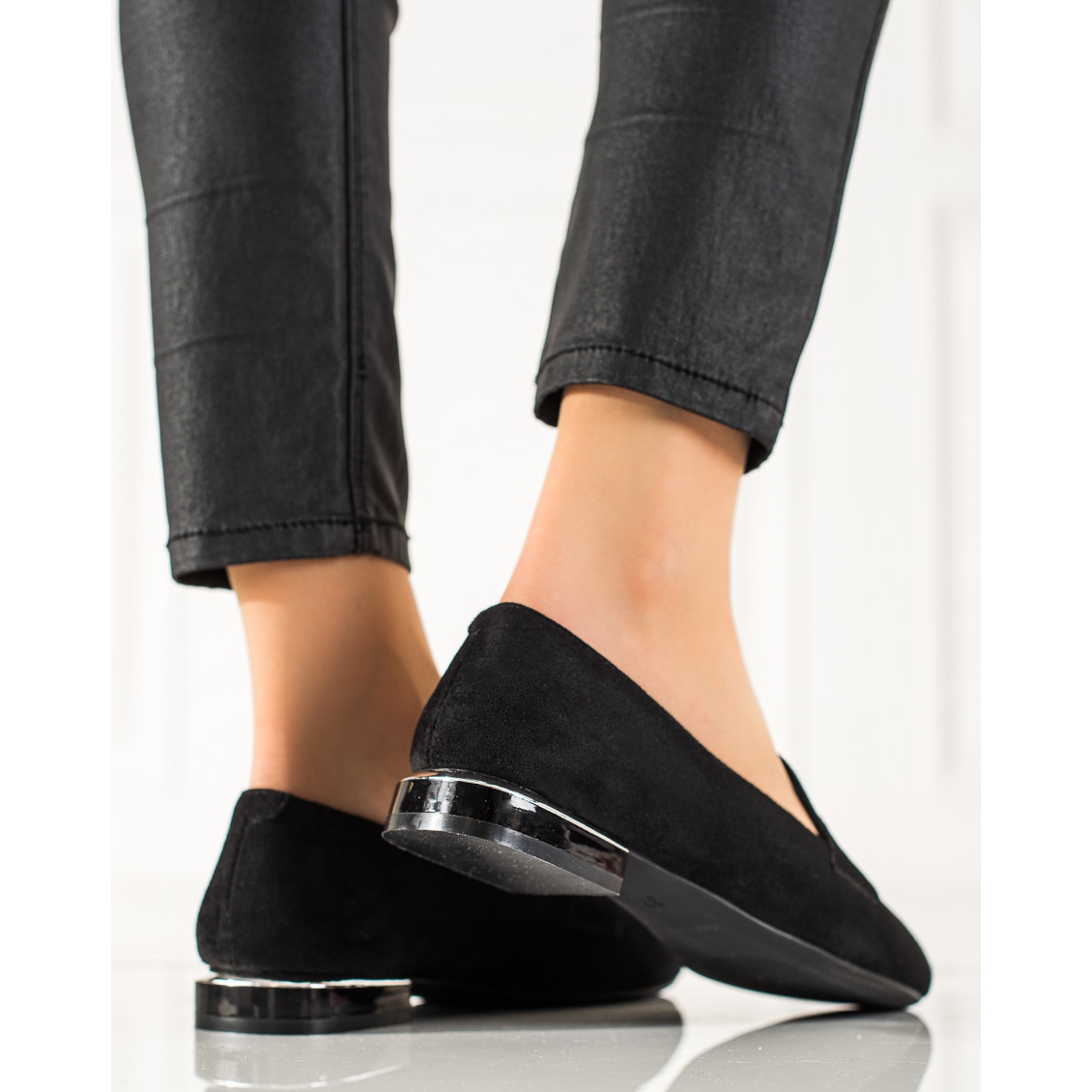 Découvrez l'élégance et le confort avec les chaussures classiques Sergio Leone. Ces mocassins noirs sont le choix parfait pour les femmes modernes qui apprécient la combinaison de style et de confort. Fabriquées en daim écologique de haute qualité, les chaussures sont durables et esthétiques.