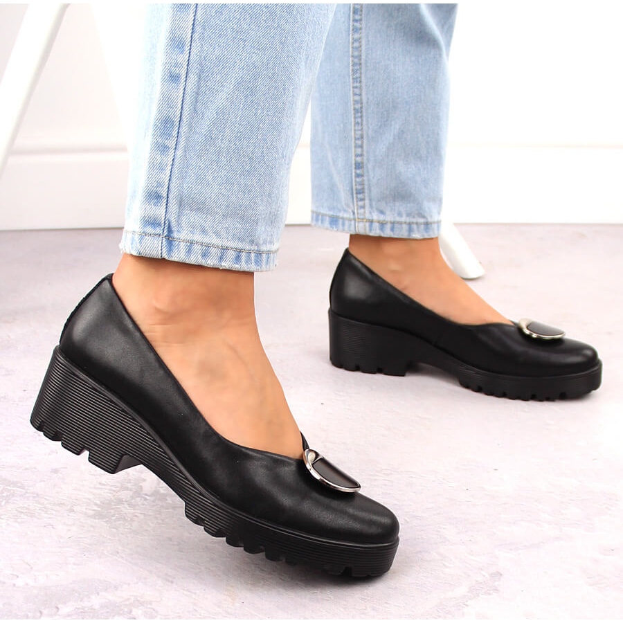 Les chaussures à enfiler pour femmes en cuir noir Filippo DP4569 sont la combinaison parfaite d'élégance et de confort qui s'adapteront à tous les styles. Fabriquées en cuir naturel de haute qualité, ces chaussures tendance se démarqueront certainement des autres modèles. La décoration originale sur la tige ajoutera de la brillance et soulignera l'individualité de chaque femme.