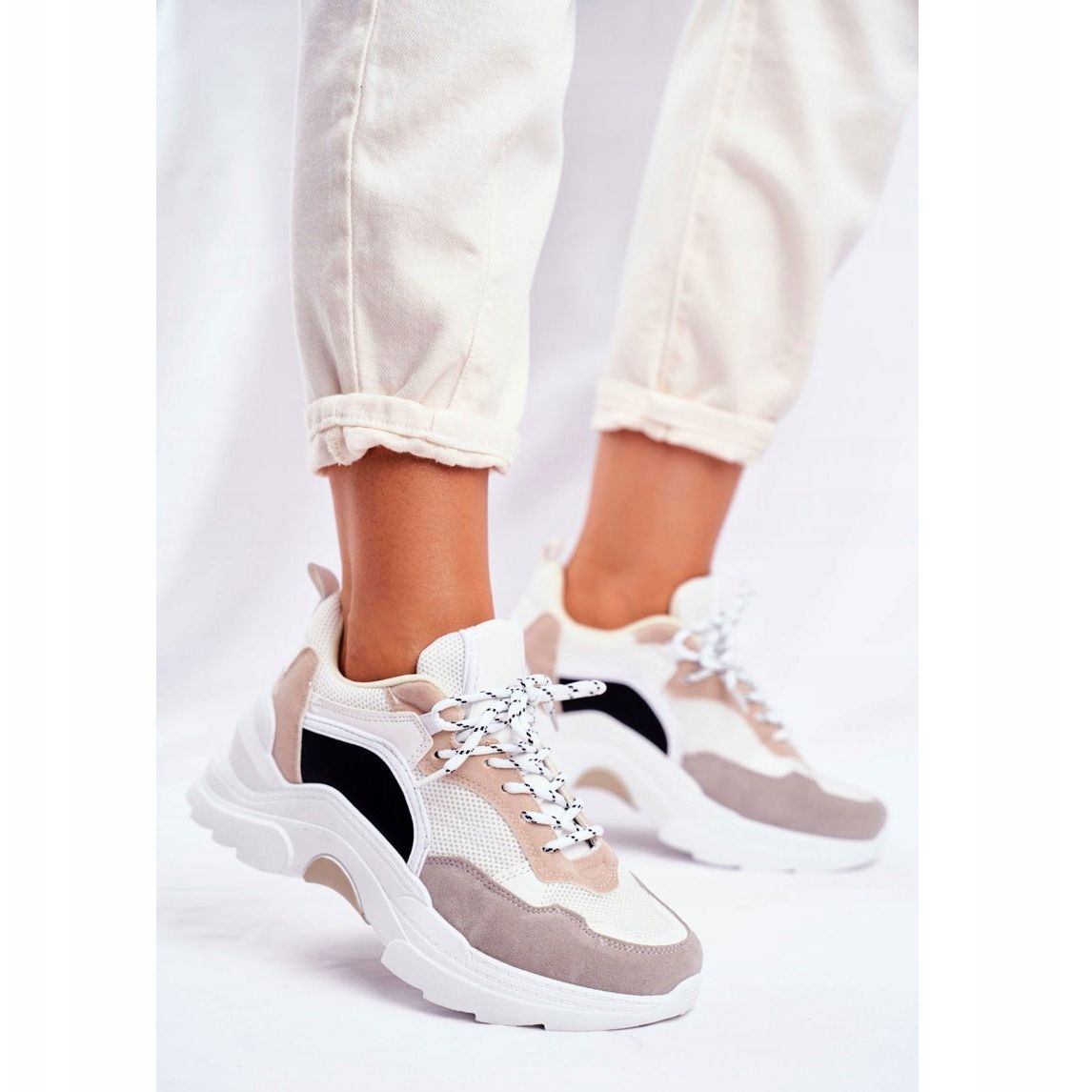 Détails: PS1 Chaussures Sport Femme Baskets Blanc et Beige Mindanao