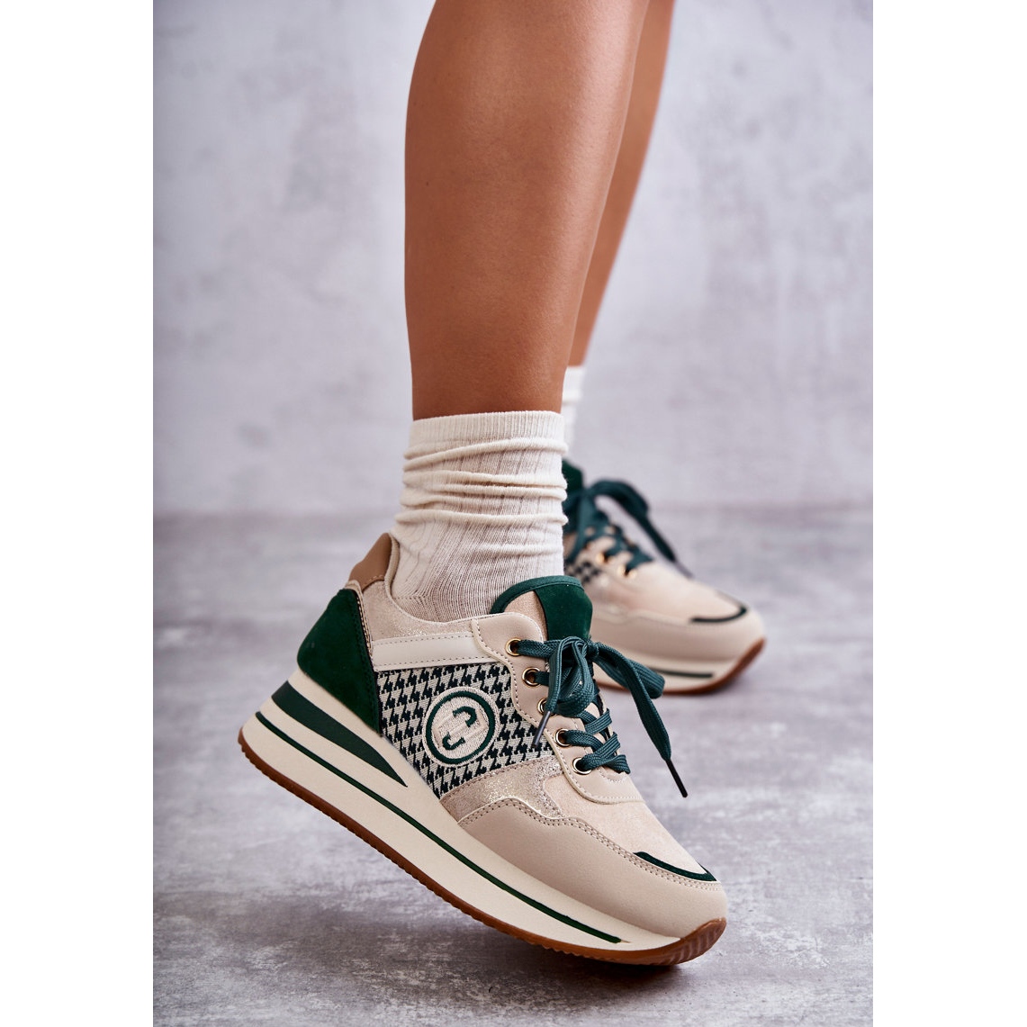 Découvrez le confort et le style avec les chaussures de sport compensées à la mode pour femmes du fabricant FB2. Ces chaussures beiges et vertes uniques allient design moderne et fonctionnalité, répondant parfaitement aux besoins quotidiens des femmes actives.