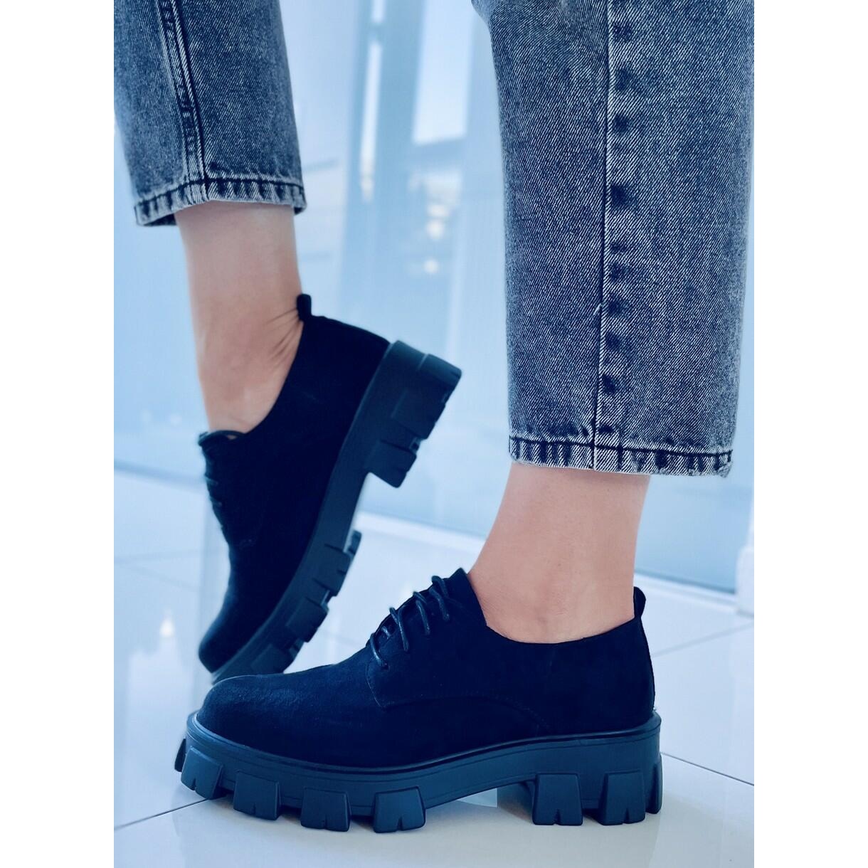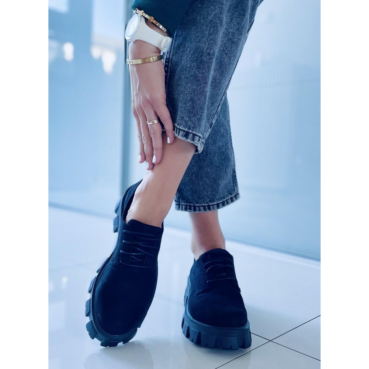 Les chaussures Apollo Black à semelle épaisse sont un choix parfait pour les femmes qui apprécient la combinaison de style et de confort. Fabriqués en daim écologique, ces mocassins à lacets noirs se caractérisent par une forme classique qui s'intègre parfaitement dans les dernières tendances de la mode.