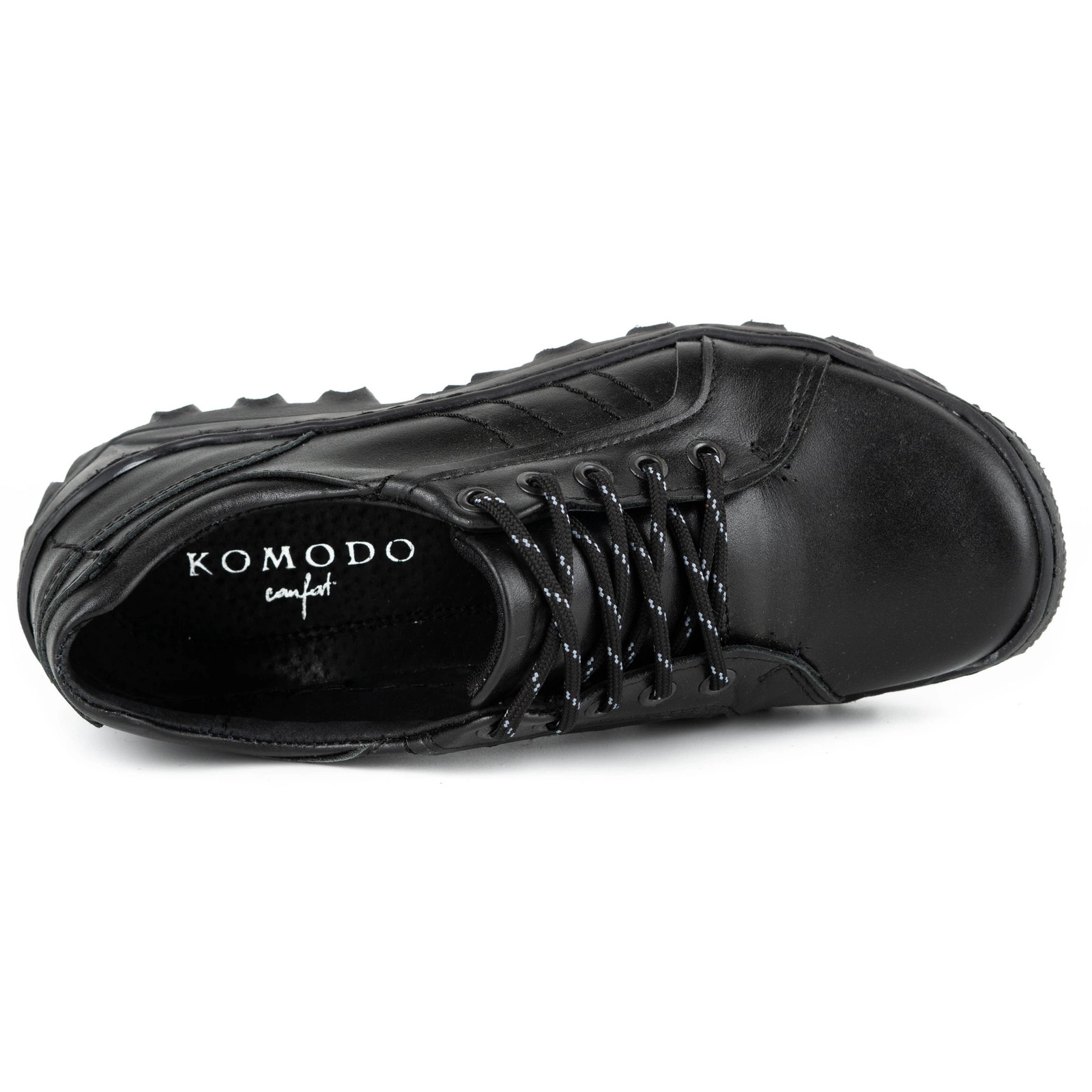 Élégant, confortable et universel - Komodo 636 Chaussures masculines combinez le trekking coupé avec le confort quotidien. Le haut est du cuir naturel à grains, facile à nettoyer, et l'insert intérieur est également fait de cuir naturel, ce qui assure une circulation et un confort adéquats d'air même avec un port plus long. La semelle flexible et légère en caoutchouc thermoplastique s'adapte au mouvement du pied, tandis que le laçage classique garantit un ajustement stable.