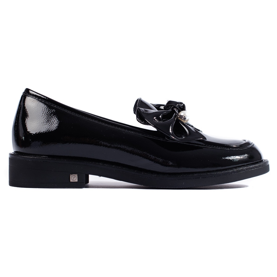 Nous vous présentons d'élégantes chaussures en cuir verni pour femmes avec un nœud du fabricant W. Potocki. Ces chaussures noires élégantes correspondent parfaitement aux dernières tendances et constituent l'élément parfait de la garde-robe de chaque femme. Fabriqués en cuir verni écologique de haute qualité, ils sont non seulement attrayants en apparence, mais également durables.