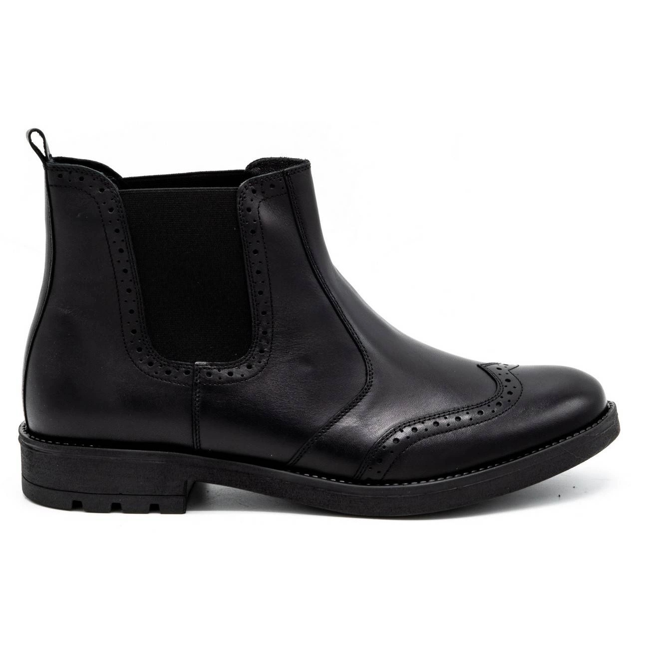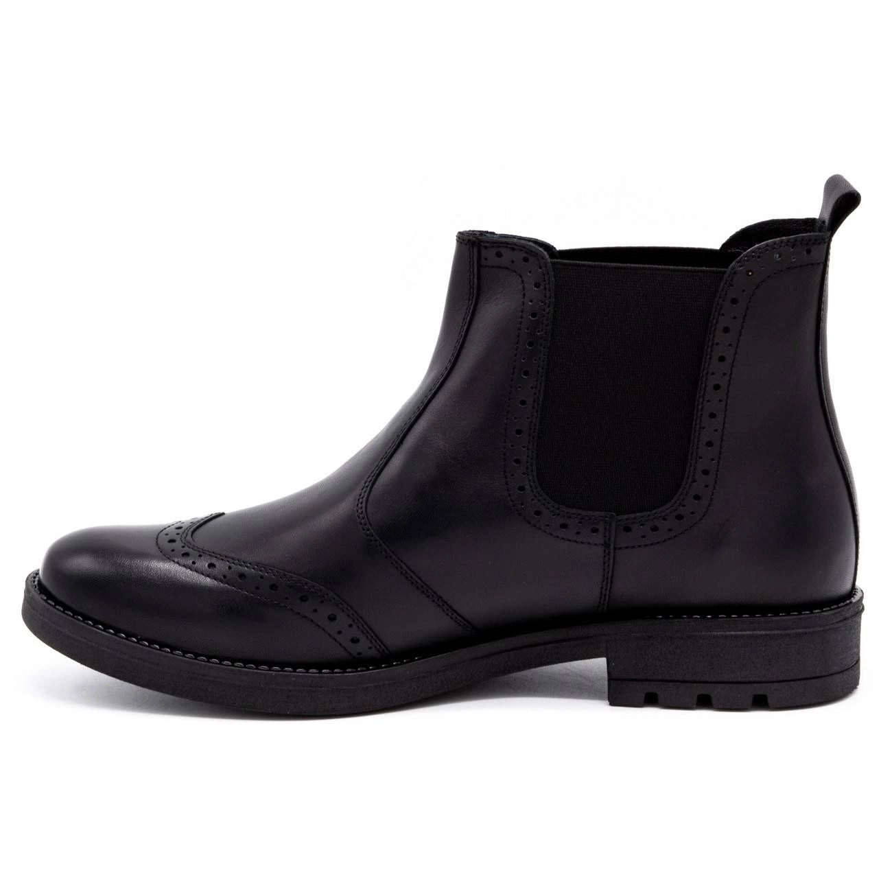 Chelsea élégant et universel en cuir naturel de haute qualité. Le modèle 7003KB combine une coupe classique avec une finition moderne - un nez rond et une fixation coulissante fournissent un style et une commodité quotidiennement. C'est un excellent choix pour un costume et des stylisations plus décontractées.