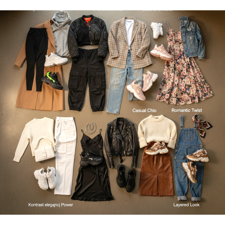 Les proportions de la tenue – choisissez des hauts plus amples ou des bas ajustés avec des baskets massives. Évitez de combiner des leggings très serrés avec des leggings épais très décoratifs - cela peut paraître écrasant.