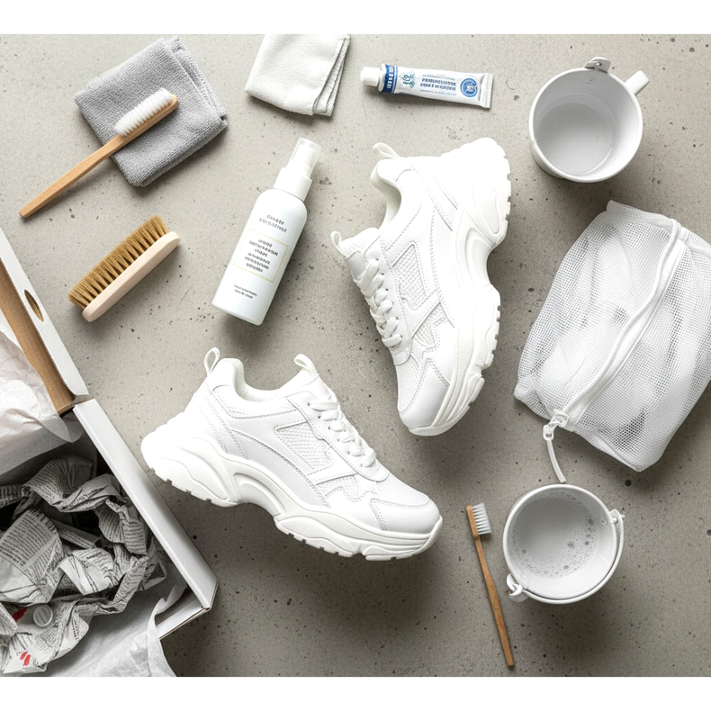 Laver les baskets blanches – les morceaux blancs peuvent souvent être lavés en machine (vérifiez l'étiquette du fabricant). Utilisez un programme doux, de l'eau froide et un sac à chaussures. Sécher à température ambiante.