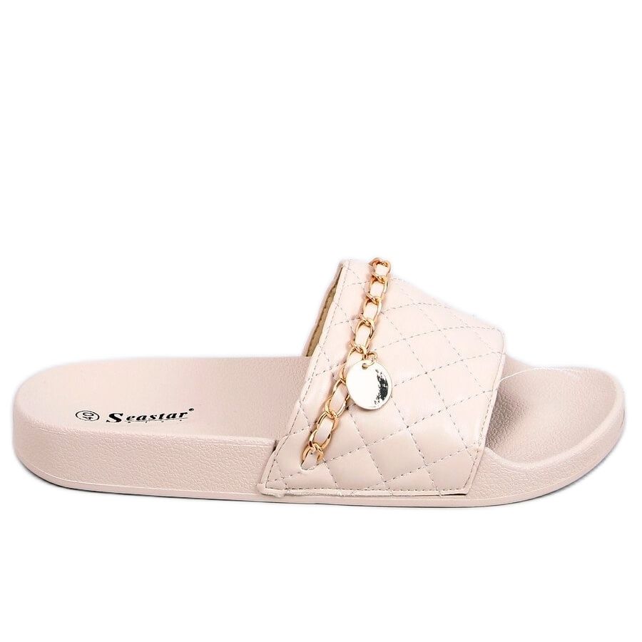 Nous vous présentons les tongs beiges CK189P, parfaites pour toutes les femmes qui souhaitent ajouter du chic à leur garde-robe estivale. Ce modèle unique se distingue par un matelassage impressionnant et une chaîne tendance qui attirera l'attention et vous fera sentir comme une véritable star.