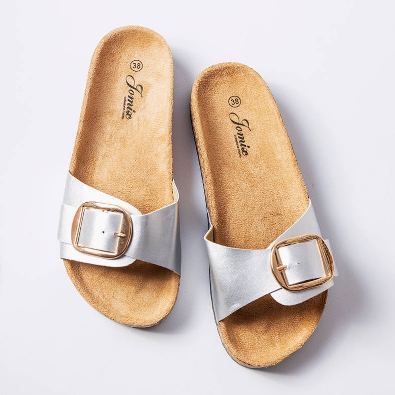 Choisissez des tongs argentées avec une boucle Benoit et profitez du style et du confort pendant les journées d'été !