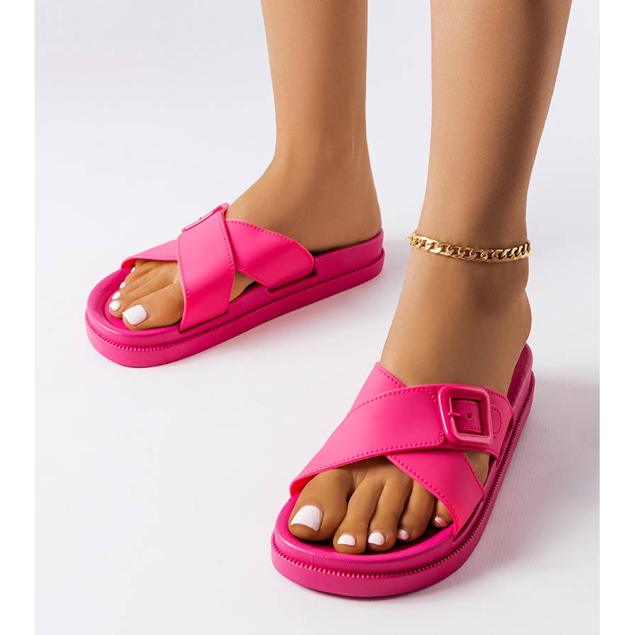 Le modèle Pauline est équipé d'une jolie boucle, qui est non seulement un élément pratique, mais aussi un accent esthétique. Dans une nuance fuchsia, ces tongs sont suffisamment accrocheuses et universelles pour s'agencer à un large éventail de styles estivaux, des robes de plage aux shorts de ville.