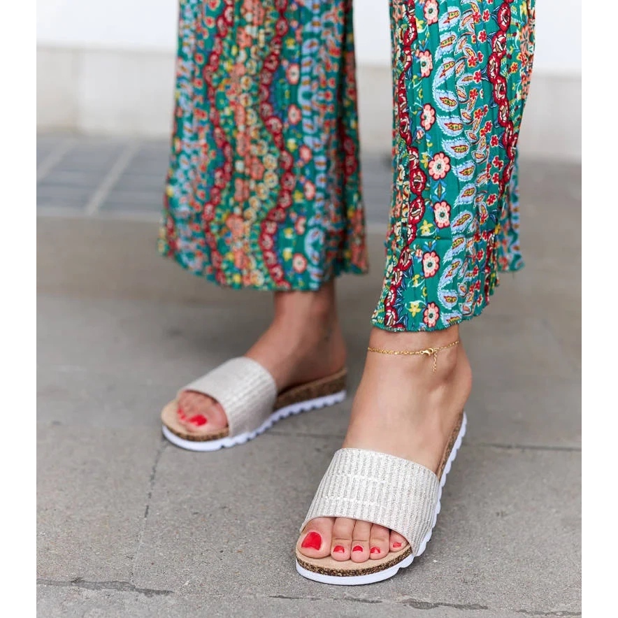 Découvrez la splendeur du style estival avec les claquettes Issiglio dans une nuance de splendeur dorée ! Ces superbes mules à paillettes dorées sont le choix parfait pour les femmes qui souhaitent ajouter une touche de luxe à leur look décontracté. Les créateurs ont veillé à allier le chic subtil au confort d'utilisation au quotidien.