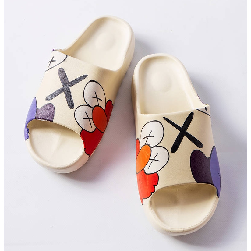 Les tongs beiges avec bande de roulement et imprimés-été incontournables
