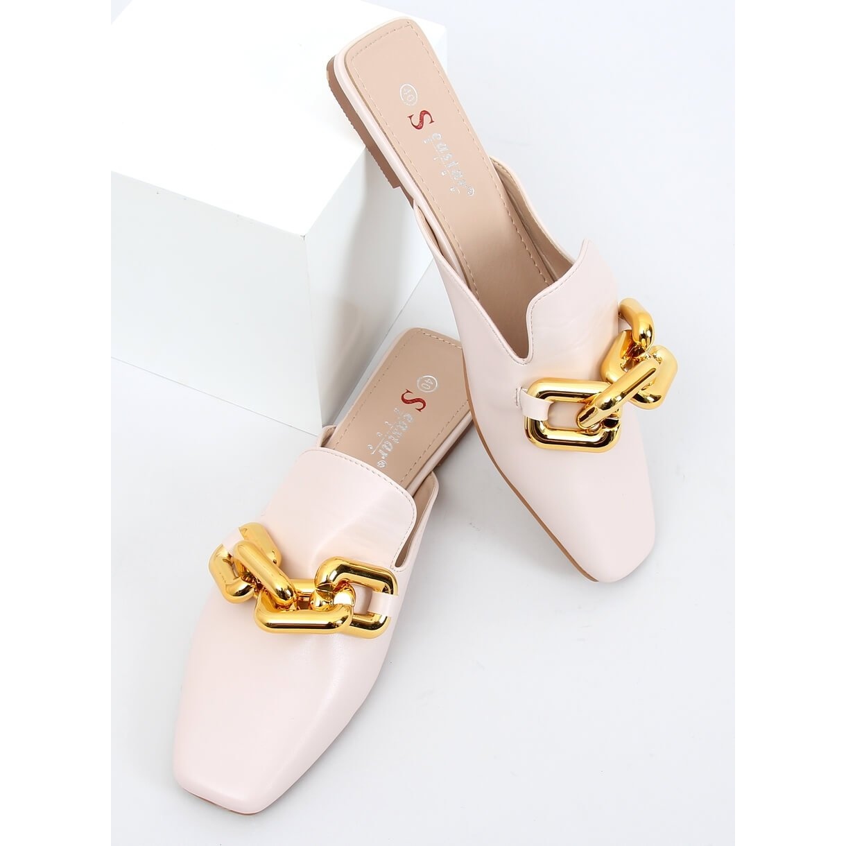 Les pantoufles féminines de bon goût en cuir écologique, qui combinent la simplicité classique avec des détails à la mode. Le modèle se distingue par une chaîne en or élégante placée à l'avant et un nez carré moderne - grâce à cela, les chaussures sont féminines et extrêmement à la mode. Une semelle plate et un insert écologique doux assurent le confort même pendant le port plus long.