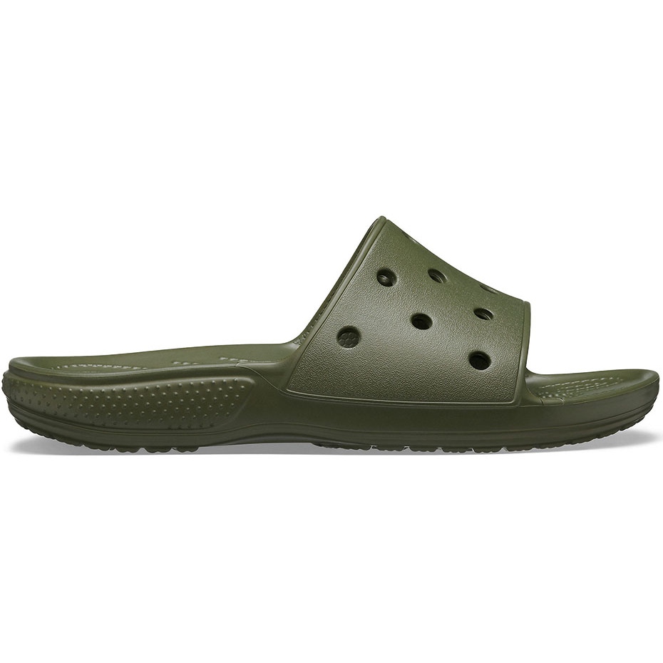 Crocs Classic Slide Khaki (modèle 206121 309) - tongs unisexes légers et confortables idéaux pour l'été, la plage et le port quotidien. Fabriqués en plastique Croslite ™, ils fournissent un amorti et une facilité de nettoyage; Les ouvertures de ventilation augmentent la respirabilité et la coupe minimaliste correspond à de nombreux styles.
