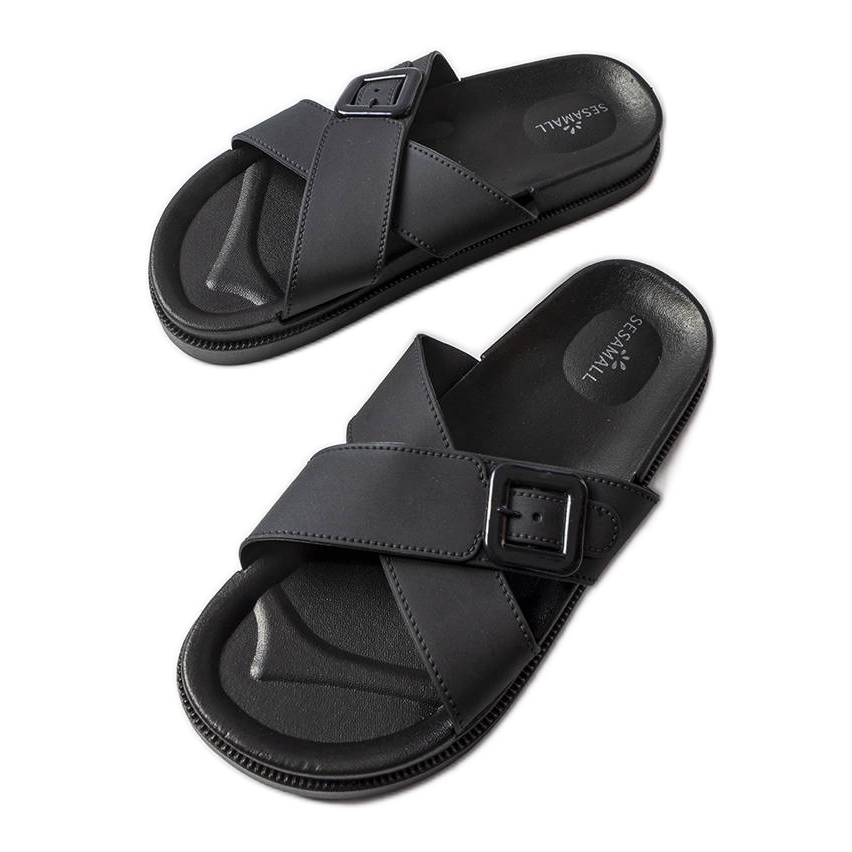 Détails: Claquettes en caoutchouc noir avec boucle Pauline