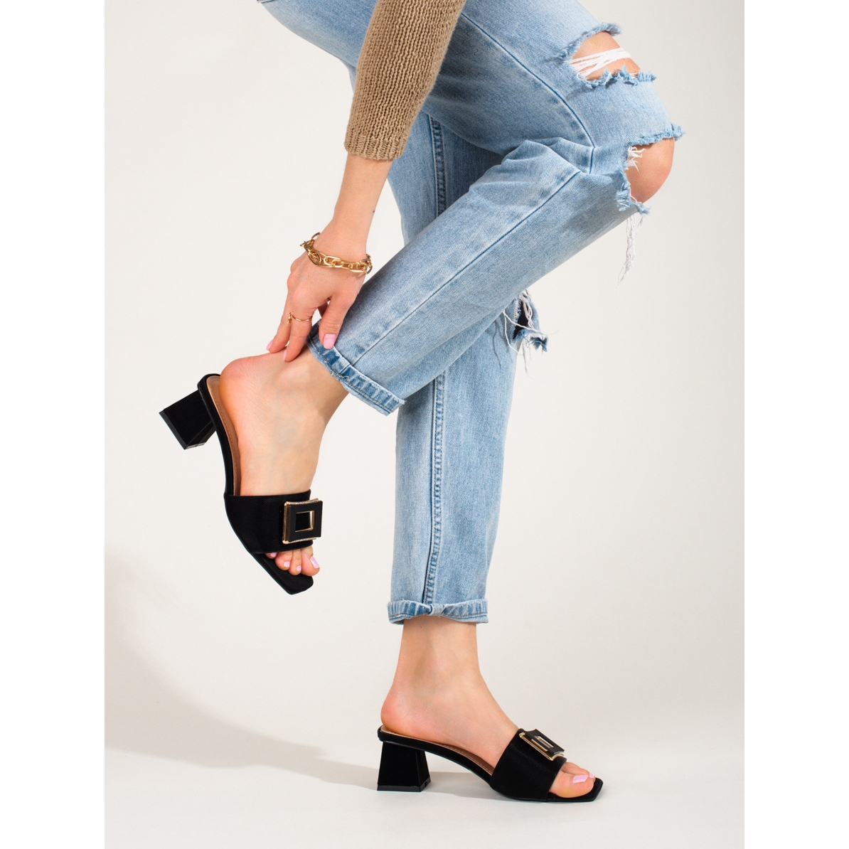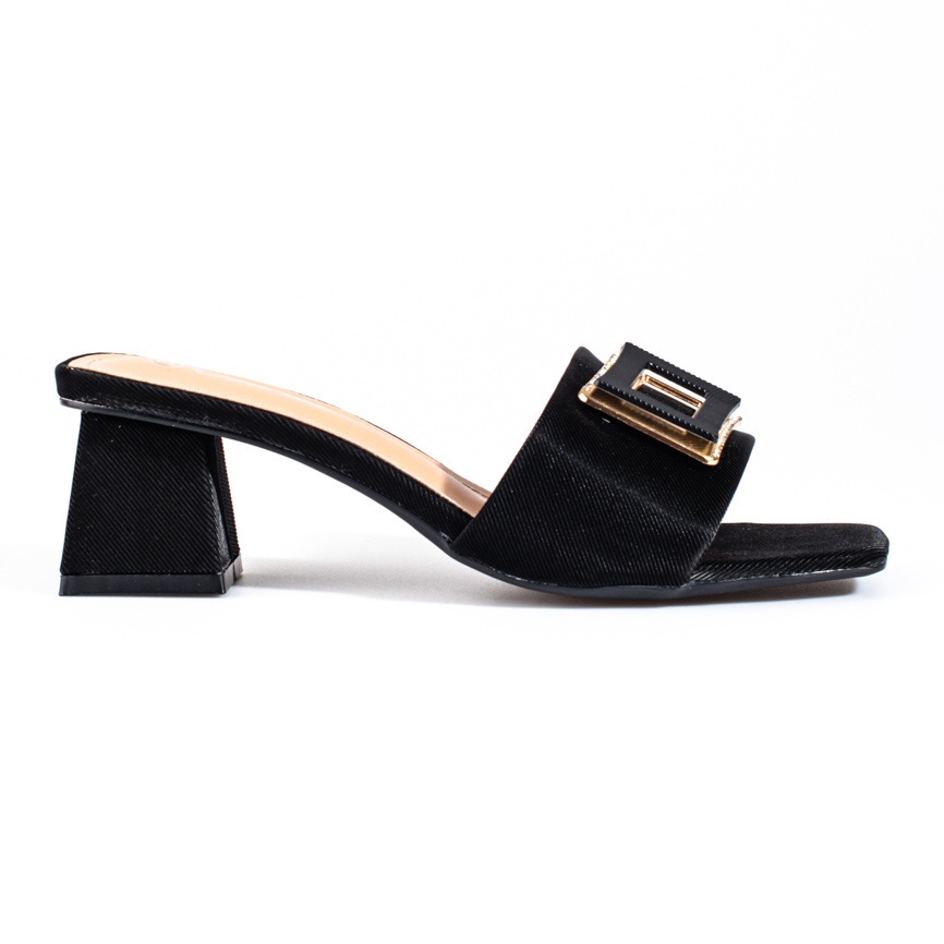 Détails: Claquettes en tissu pour femmes sur un petit talon Shelovet noir