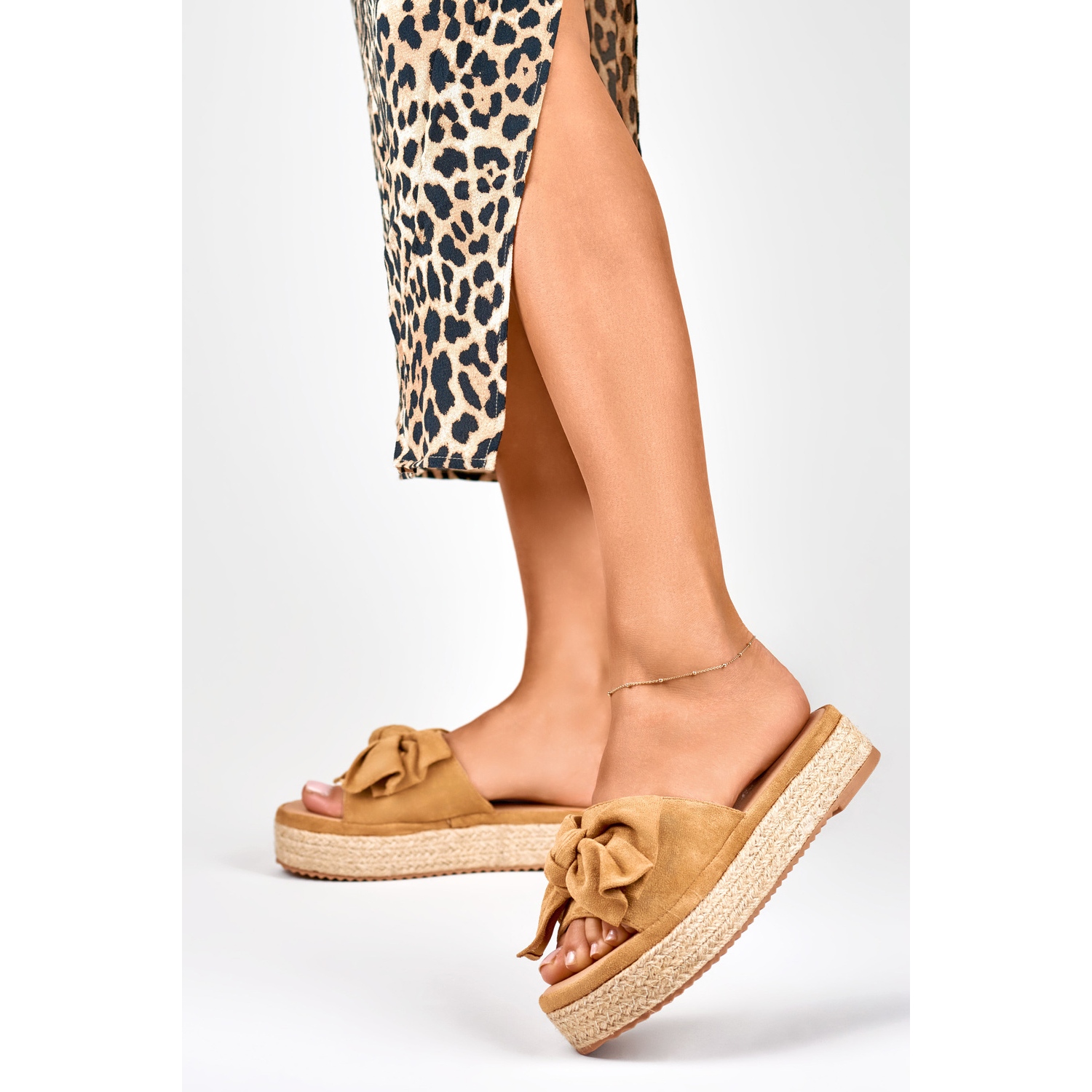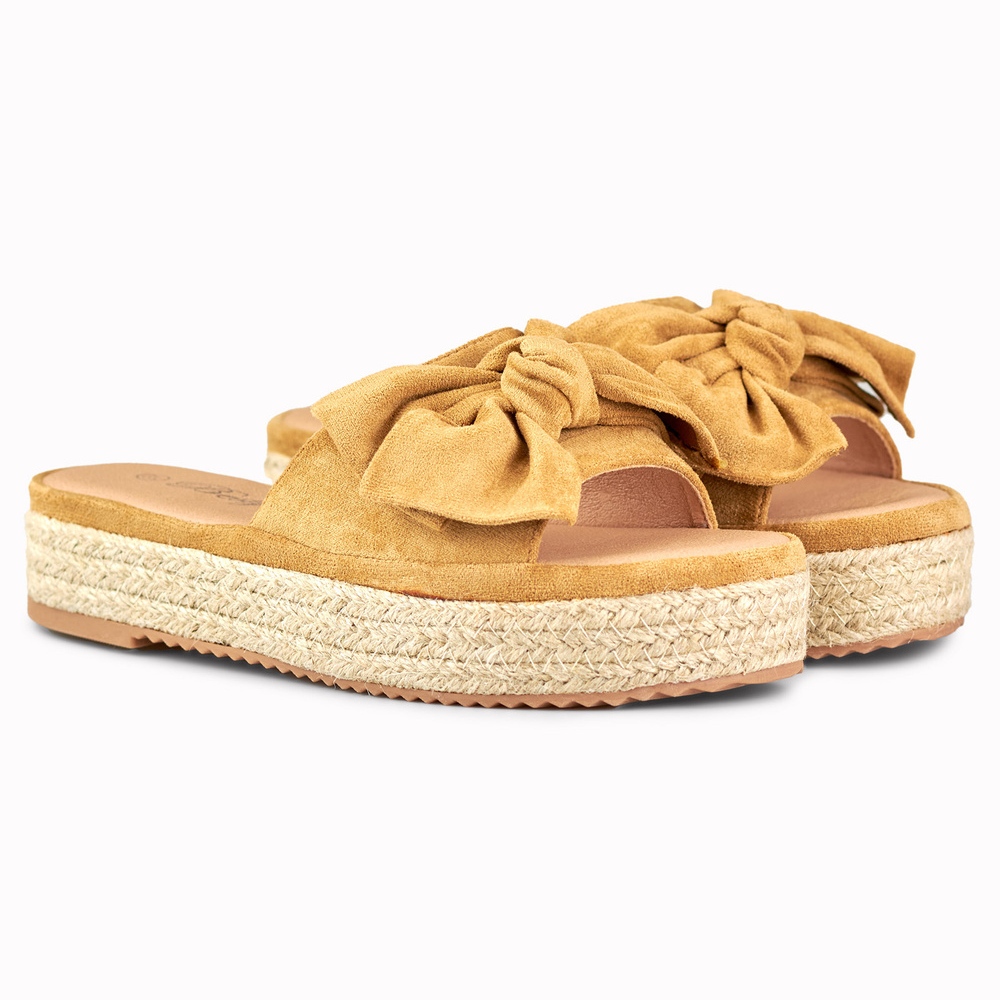 Espadrilles élégants et confortables avec un arc, parfait au printemps et en été. Fabriqués d'agréables au daim écologique, sur une plate-forme légère de 4 cm, ils combinent un style décontracté avec un accent féminin sous la forme d'un arc subtil. La structure insérée et l'orteil ouvert assurent le confort de porter les jours chauds, et la semelle intérieure écologique s'occupe du puits des pieds.